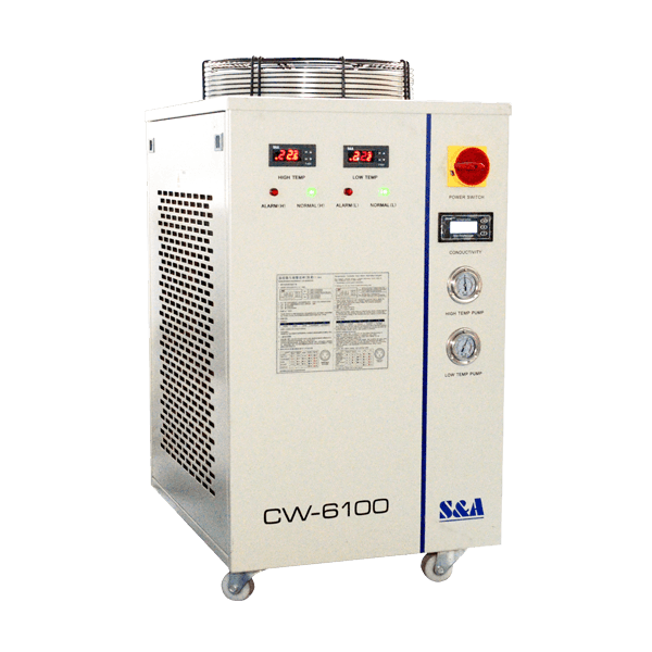 Работа лазерных станков на повышенной скорости, с максимальной производительностью и минимальными потерями возможна только при наличии принудительного охлаждения излучателя станка — высокопроизводительного чиллера CW-6100.