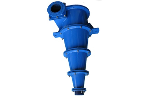 Гидроциклон обеспечивает примерно ту же степень очистки, но имеет значительно меньший объем по сравнению с отстойниками. Напорный гидроциклон состоит из цилиндрической и конической частей. Вращающаяся жидкость движется в периферийной зоне аппарата, при этом под действием центробежных сил взвешенные вещества с большей плотностью перемещаются в пристенный слой.