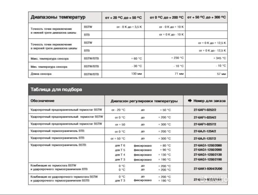 Согласно стандарту EN 60079-30-1, предохранительные ограничители температуры BTB II и BSTB II предназначены