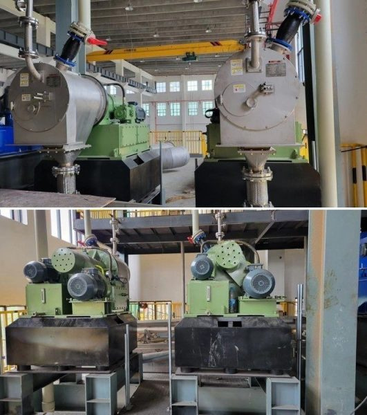 Центрифуга двухступенчатая с поршневым толкателем HR850-N отличается непрерывной подачей и периодической выгрузкой. Она способна осуществлять непрерывную подачу, разделение, промывку, выгрузку и другие процессы на полной скорости.