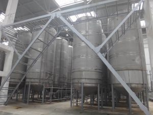 Акратофоры нержавеющие, объем -25 куб.м., вертикальные, с рубашкой