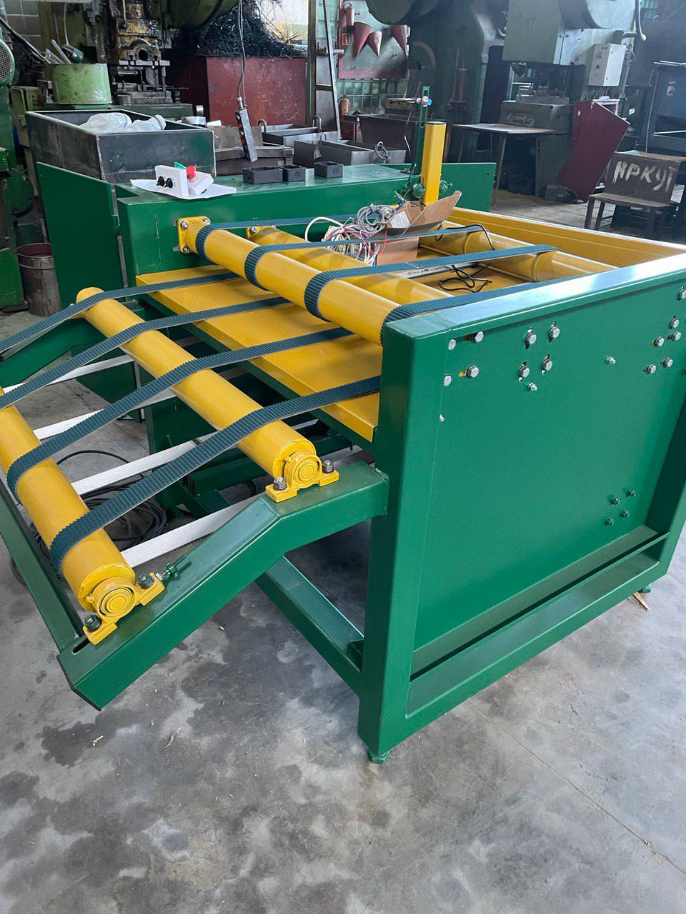 Гильотина автоматическая с подачей и возможностью вырубки дефектов, сучков. Ширина резки 1000мм. Предназначена для резки шпона, бумаги, картона толщиной до 12мм. Есть возможность регулировки скорости рубки и подачи.