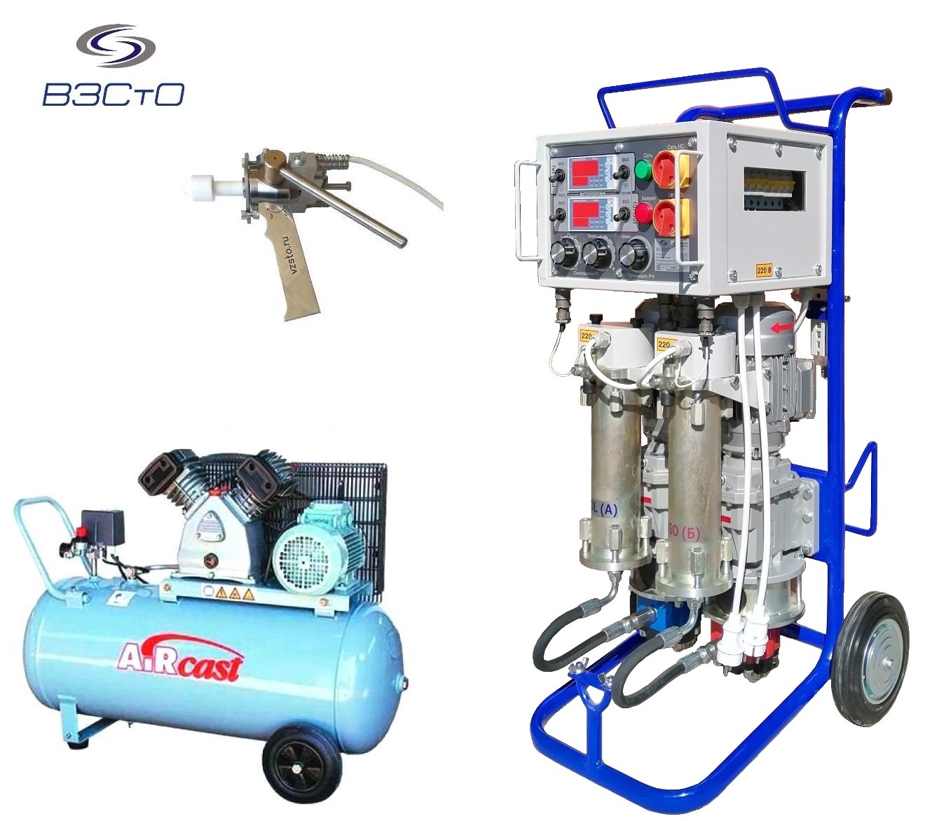 Оборудование ппу с проточными подогревателями компонентов. Работает на любых ппу компонентах с соотношениями от 1:1 до 1:2 с шагом 0,1. Установка соотношений - электронная, за секунду. Производительность 1-3л/мин (можно менять в процессе работы). Два частотных регулятора управляют раздельными приводами специализированных насосов. Проточные подогреватели с термостатированием - съёмные, с индикацией текущей температуры на цифровых табло. Установка работает от сети 220В, комплектуется профессиональным распылителем с автоматическим управлением насосной станцией. Для работы требуется небольшой компрессор на 220В. Вес установки - 76кг. Заводская гарантия, отличные отзывы от клиентов и производителей ппу компонентов!