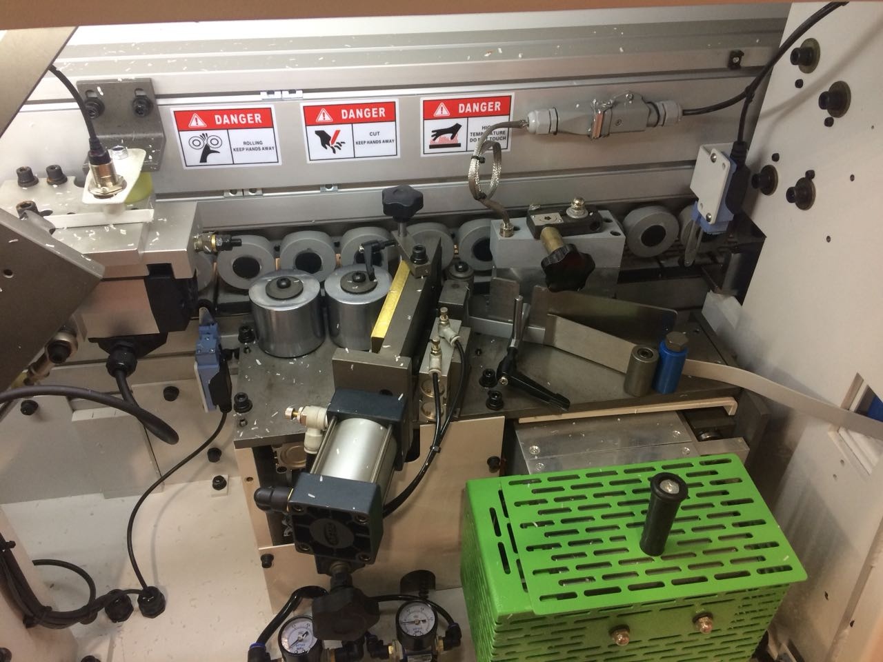 - Фрезерный узел для снятие свесов с вертикальной и горизонтальной настройкой, с двумя высокочастотными двигателями 12 000 об/мин. Радиус фрезы 2 мм;