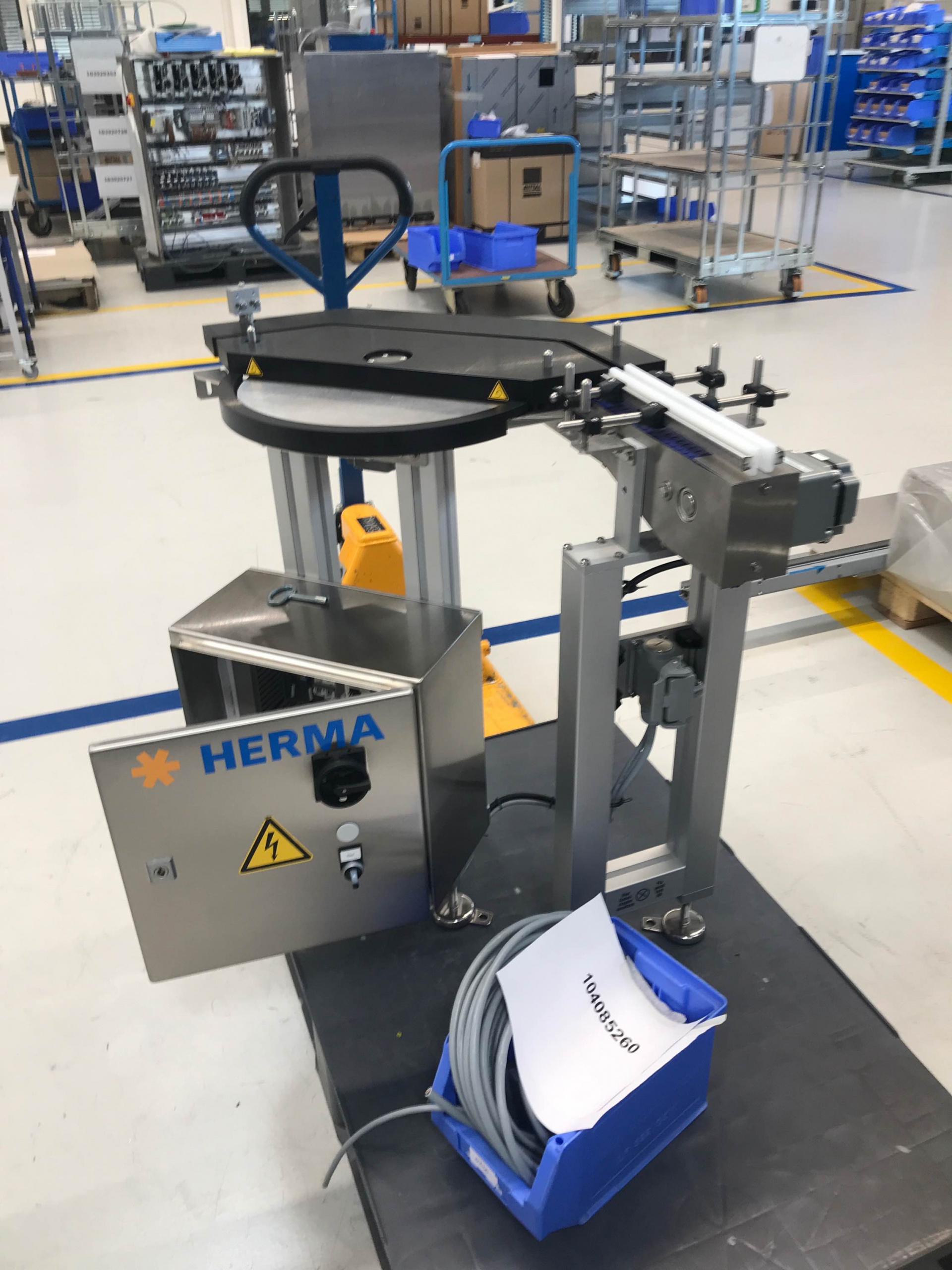 - Этикетировочная машина (400 шт/мин), с подающим поворотным столом для PP-лотков с внутренними размерами 428*244*42 мм (дшг),