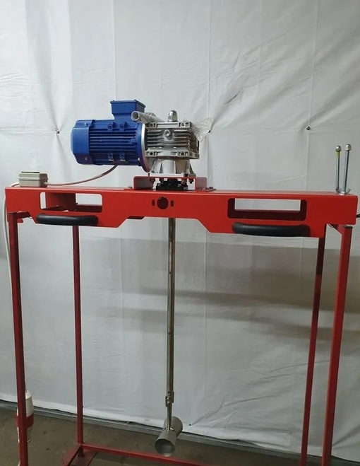 Данное перемешивающее устройство имеет полупромышленный червячный мотор-редуктор мощностью 0,75 кВт.