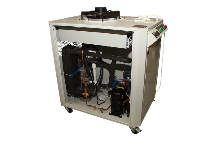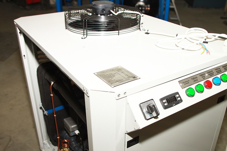 Предлагаем чиллер 15-5 кВт, установка выполнена в виде моноблока (металлический каркас, окрашенный порошковой краской с защитно-декоративными легкосъемными панелями). Из установки выведены четыре водяных штуцера, два Ø1” для долива и слива жидкости и два Ø1 1/4” для подведения гидравлических коммуникаций потребителя.На установке имеется панель управления с программируемым электронным процессором для задания и автоматического поддержания требуемой температуры жидкости, а также для индикации работы и аварийных ситуаций установки.