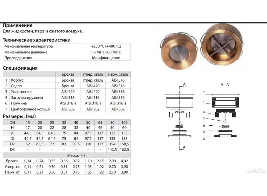Обратный клапан межфланцевый VYC170, Dn32 Pn16 - Продам в Екатеринбурге