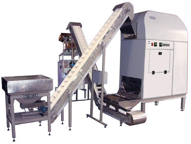 Линия жарки, дозирования и упаковки предназначена для жарки в потоке горячего воздуха и высокопроизводительной фасовки в пакеты, формируемые из рулонных термосвариваемых материалов, кофе, какао, орехи, семечек и других сыпучих продуктов.