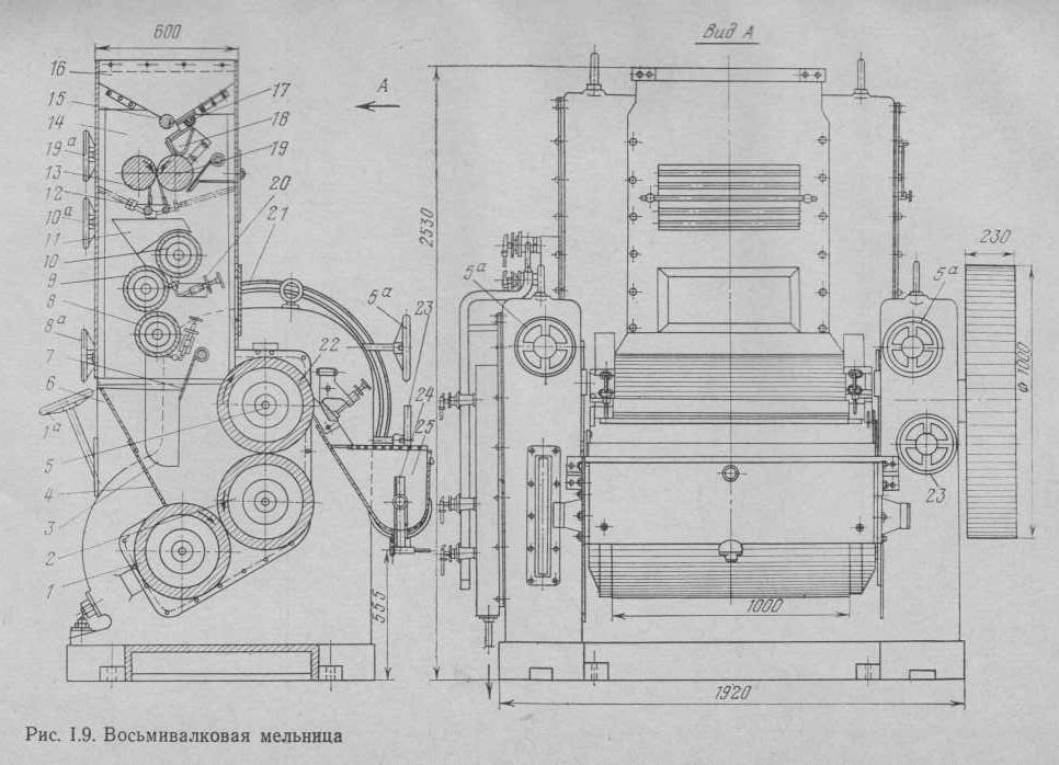 Восьми и пяти или трёх валковая мельница,конш,меланжер и тд