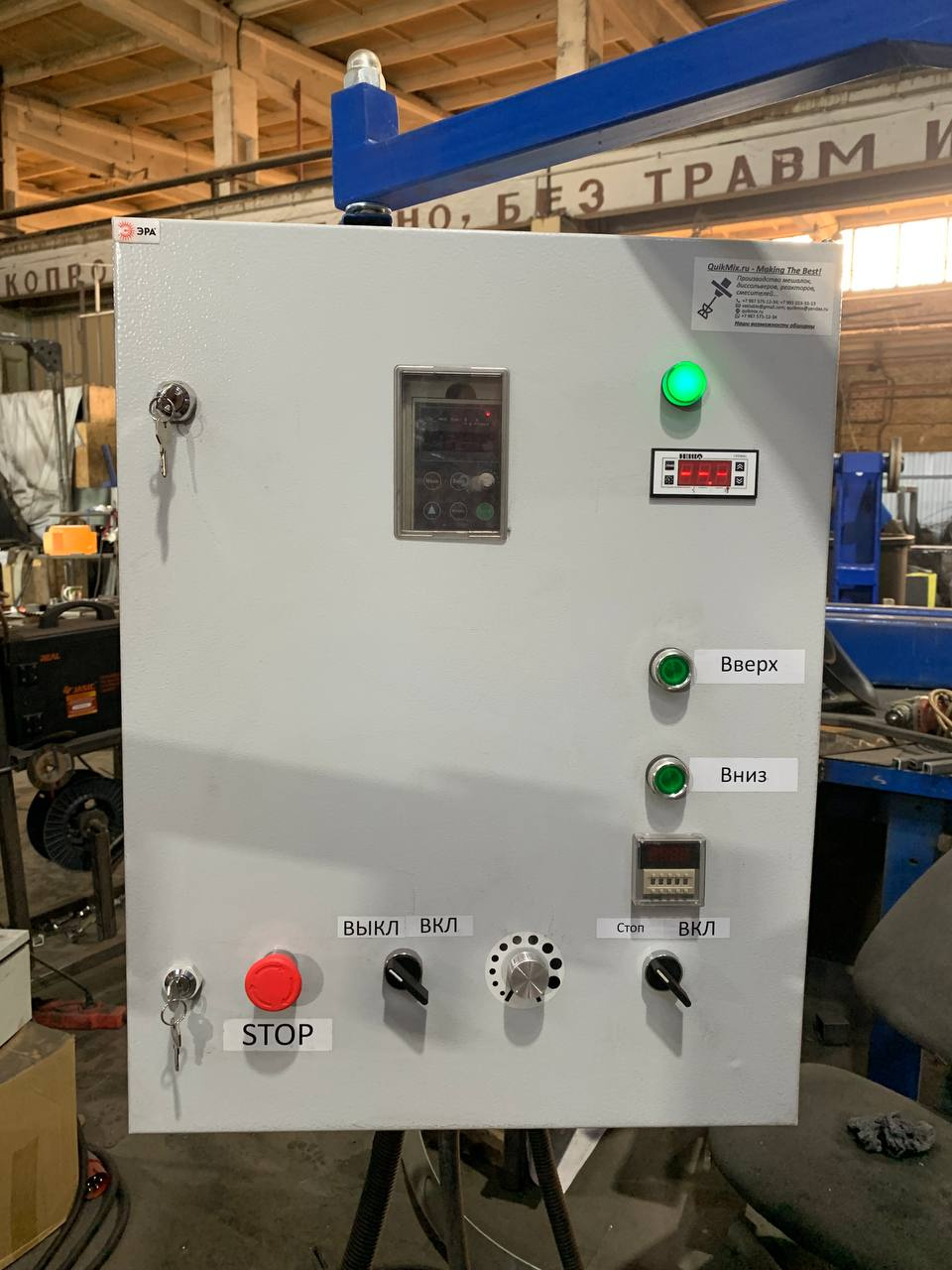✅ Диссольвер укомплектован шкафом управления, который позволяет поднимать и опускать привод диссольвера и так же регулировать кол-во оборотов на валу диссольвера.