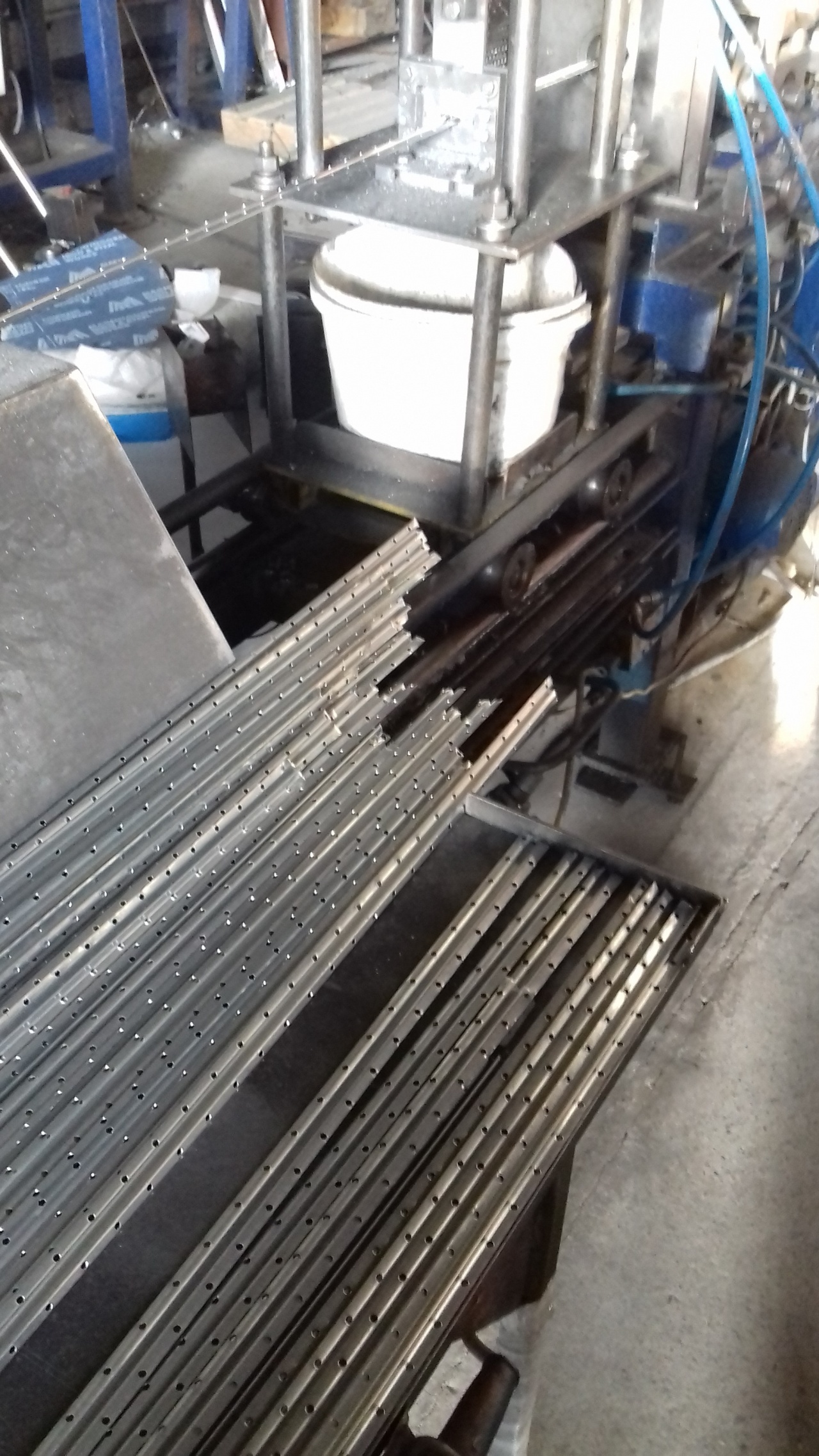 Перфорационные комплексы предназначены для пробивки большого числа отверстий в ленточном материале (штрипсе), заранее подготовленном на линии продольной резки. Лента с перфорацией используется для дальнейшего проката в линиях профилирования и получения гнутых профилей: уголка перфорированного, маячка под штукатурку. Производительность одной линии 4000 метров в смену. Обслуживает 5 линий 1 человек.