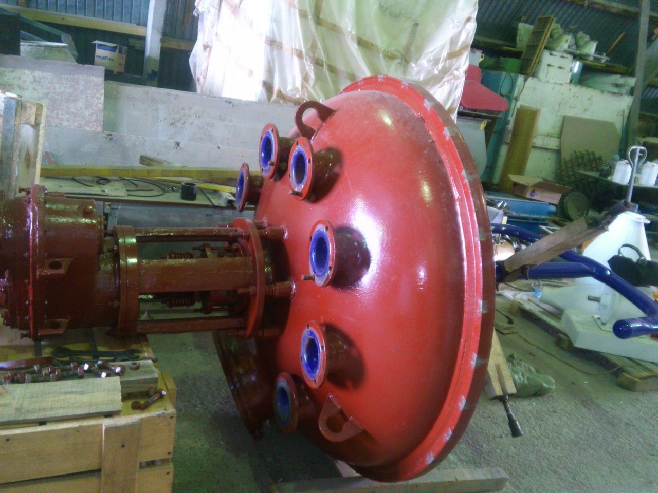 Компания продает аппарат с механическим перемешивающим устройством V=1,6 м3 эмалированный с эллиптическим днищем, эллиптической съёмной крышкой, гладкой приварной рубашкой, стойкой, редуктором, нижним выпуском продукта, перемешивающим устройством якорного типа, электродвигателем.
