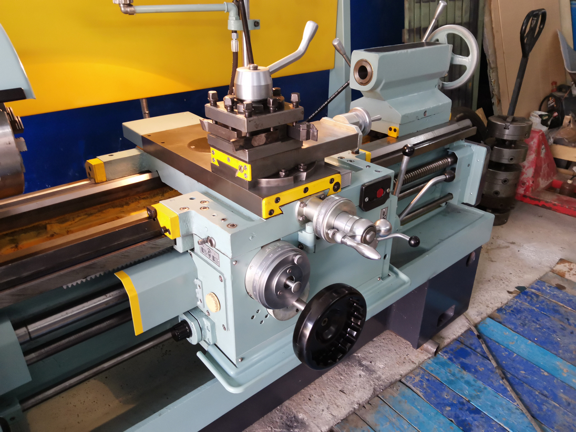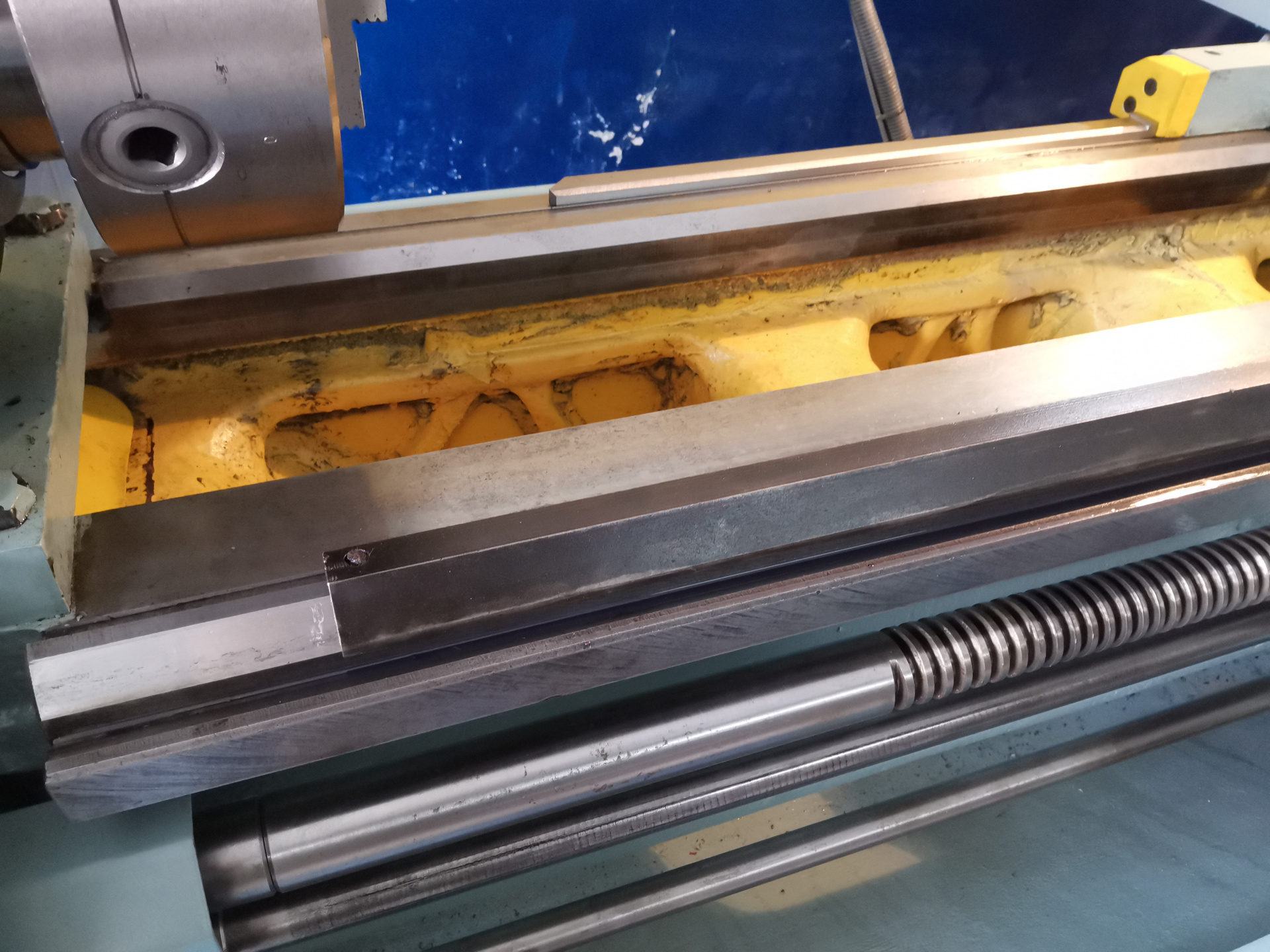 Абсолютно новый, с хранения, не работал ни дня. За 30 лет краска местами облезла, было принято решение полностью разобрать, покрасить специальной эпоксидной краской, заодно сделать ревизию всех узлов и механизмов. В результате получился эталонный станок с цифровой индикацией, новым польским патроном и двумя люнетами.