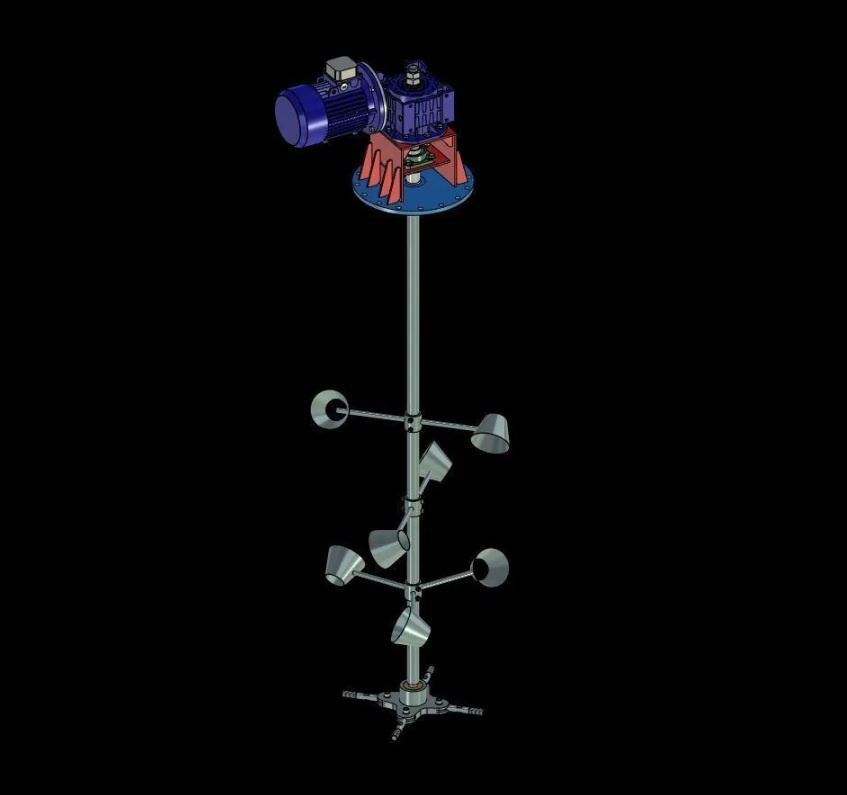 - Каждый комплект двух лучевой, конусный диаметром 850 мм. Импеллеры жестко закреплены на валу. Угол атаки каждого импеллера может быть настроен индивидуально.