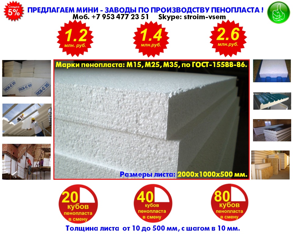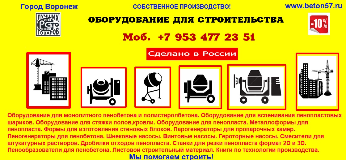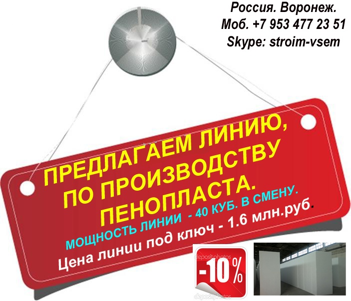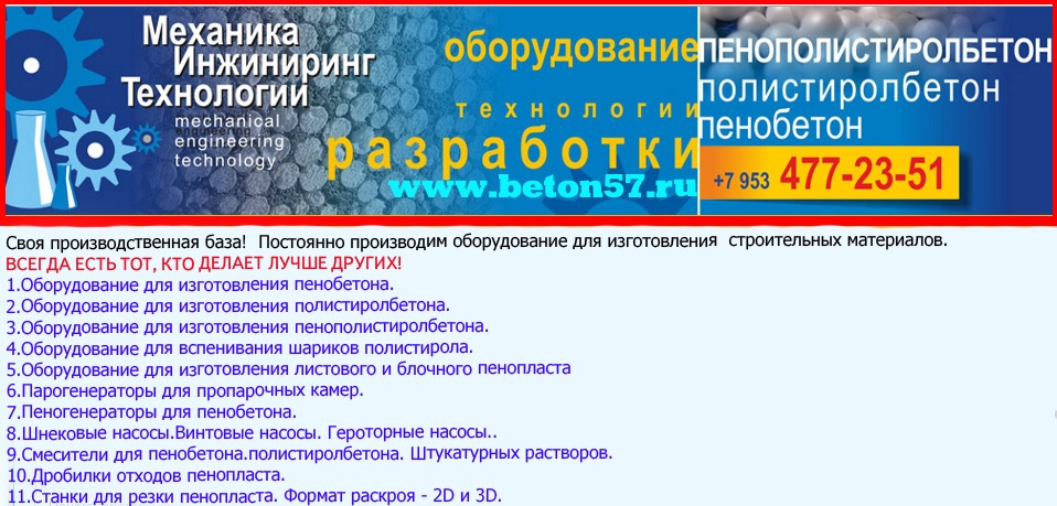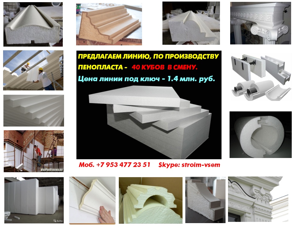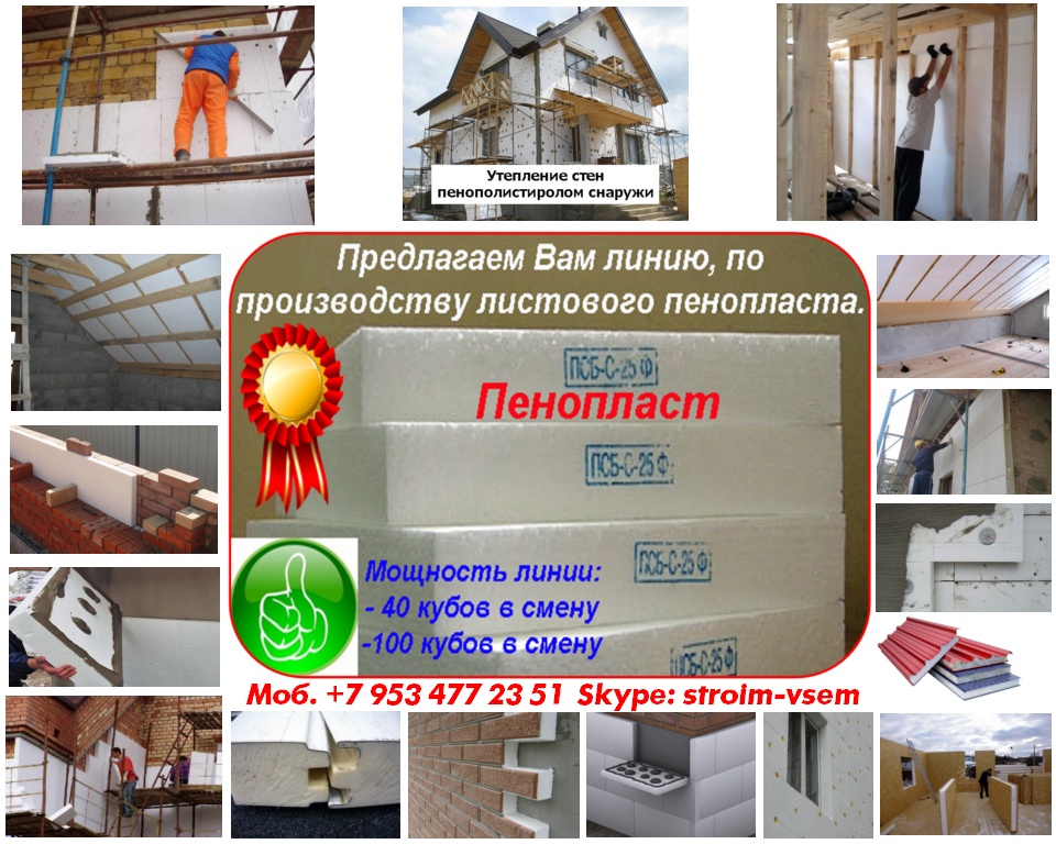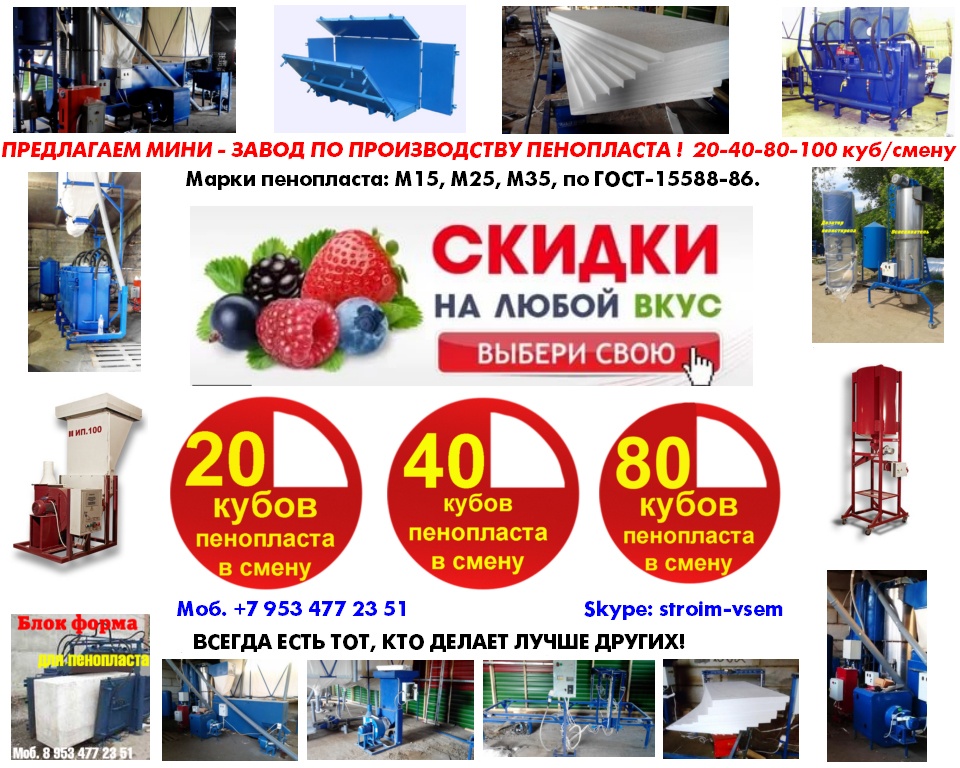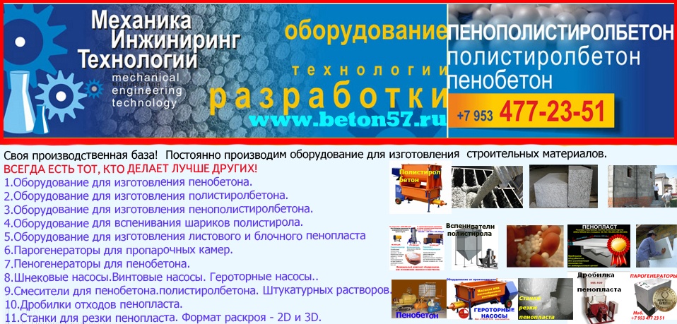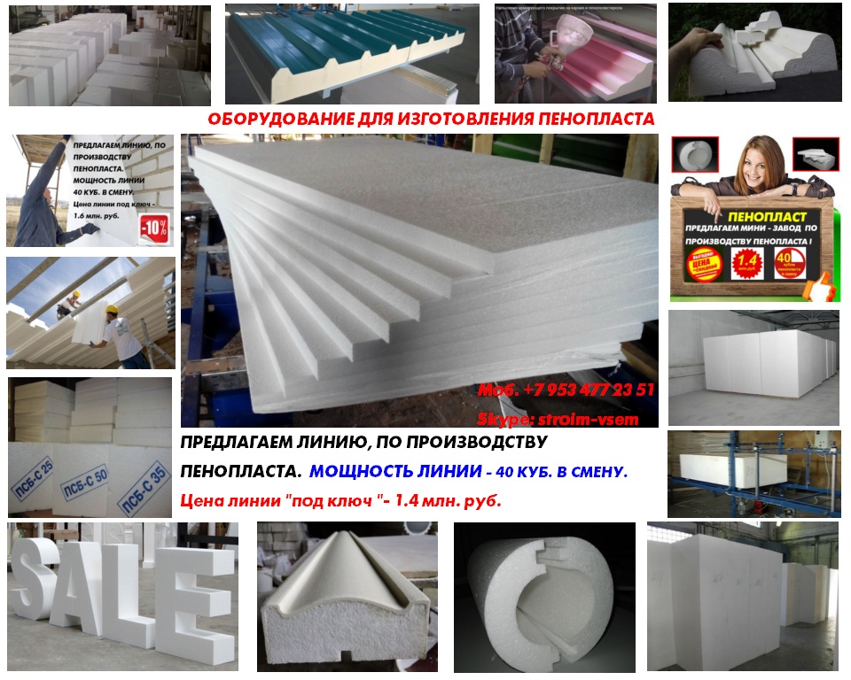 Оборудование для пенопласта пенобетона полистиролбетона. Все оборудование поставляется напрямую, исключительно от производителя.Видео здесь: https://www.youtube.com/watch?v=hVPawEHdA_E&feature=youtu.beПроизводим и предлагаем вам!Линии по производству листового пенопластаОборудование для производства полистиролбетонаОборудование для пенополистиролбетонаСмесители для пенобетонаСмеситель для полистиролбетонаСмеситель для пенополистиролбетонаБаросмесители для пенобетонаБаросмесители для полистиролбетонаШнековые насосыВинтовые насосыГероторные насосыНасосы для вязких жидкостейНасосы для пенобетонаНасосы для полистиролбетонаПроизводство полистиролбетонаПарогенераторы электрическиеПарогенераторы для пропарочных камерПарогенераторы для пропарочных камер и сушилок Парогенератор для бетонных изделийПарогенераторы промышленныеПарогенератор для сушильных камерПарогенератор для пропарки бетонаПарогенераторы для сушки древесиныПарогенераторы для пропарки стеновых блоковПарогенераторы для выращивания грибовПарогенераторы для авто мойки автосервиса и стоОборудование для резки пенопласта Станок чпу для резки пенопластаСтанок для фигурной резки пенопластаСтанок для резки пенопласта на листыФигурная резка пенопластаДробилка для пенопластаИзмельчитель отходов пенопластаРезка пенопласта Как сделать шарик из пенопласта. Книга.Фигурная резка пенопластаВспениватели шариков полистирола для пуфиков и псб У нас выгодно покупать выгодно покупать, потому что нет проблем с запчастями!Оборудование всегда в наличии. Любая форма оплатыРазумные цены. Надежность, проверенная временем.Да, вы самостоятельны и сами все прекрасно знаете... Да, вы умеете читать и пользоваться поиском... Да, вы не любите, когда вас отвлекают... Но все-таки… Если будут какие вопросы, не стесняйтесь, задавайте!Контактное лицо: Владимир Петрович.