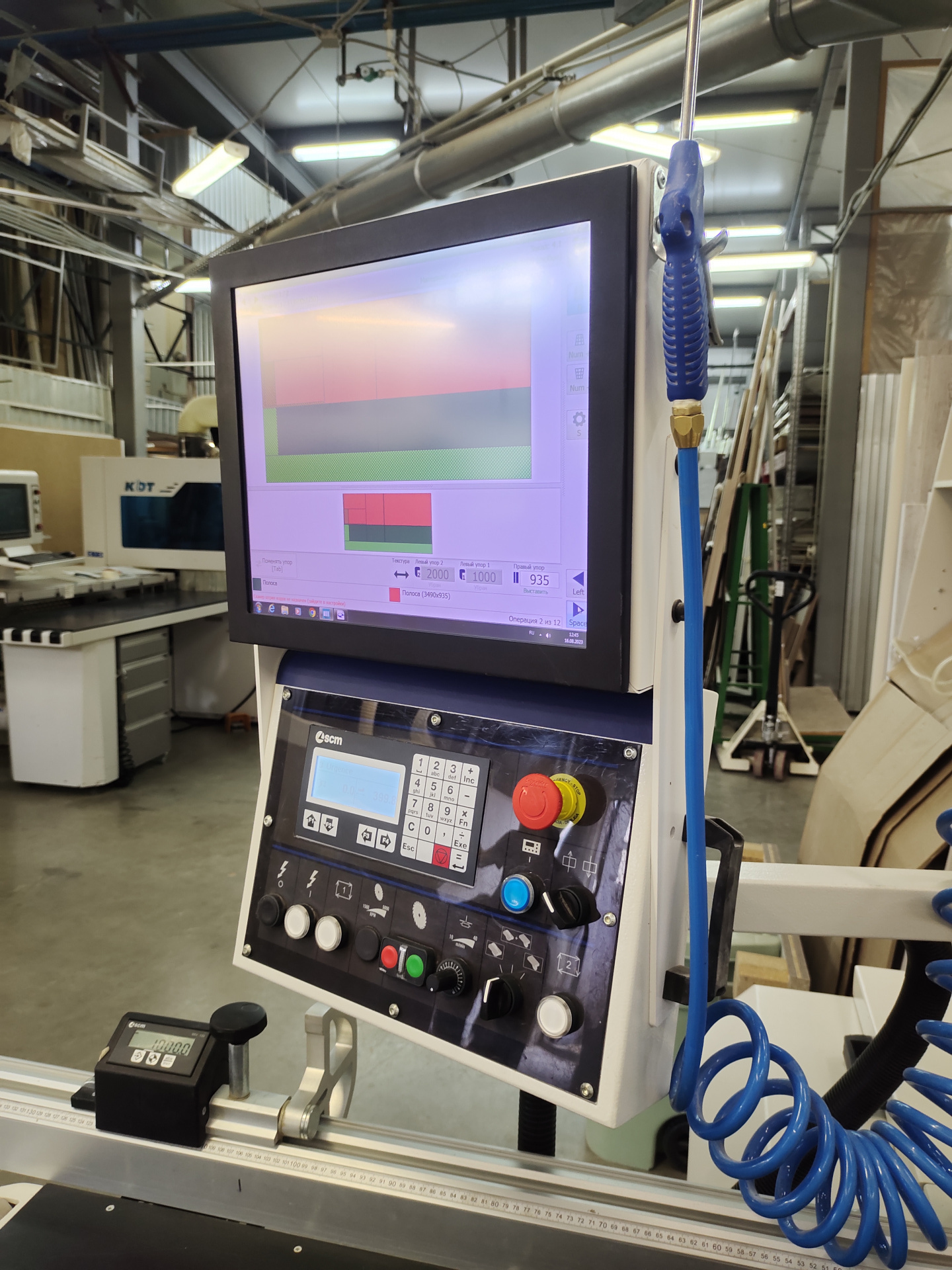 Эксплуатация 5 месяцев . Новый . Стол для загрузки листов для полного цикла работы одним оператором . Пилит пакет 3 листа . Все настройки с пульта . Продается с аспирационными отводами . Поддоны для сбора стружки . Защита линейки - упора
