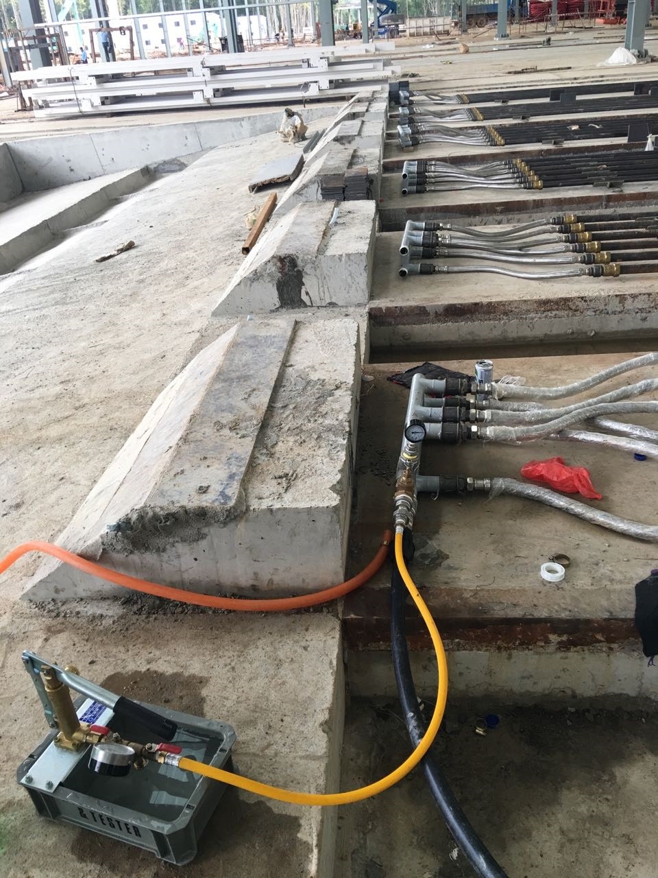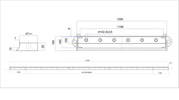 Каждая формовочная дорожка с шириной выпускаемых изделий до 1200 мм ограничена рельсами для перемещения технологического оборудования. Сама дорожка – это технологический поддон, длиной от 70 до 200 метров, для непрерывного формования плит пустотного настила. На формовочных дорожках в процессе оборудования технологических полов укладывается калиброванное металлическое листовое покрытие из листа толщиной 8-10 мм.