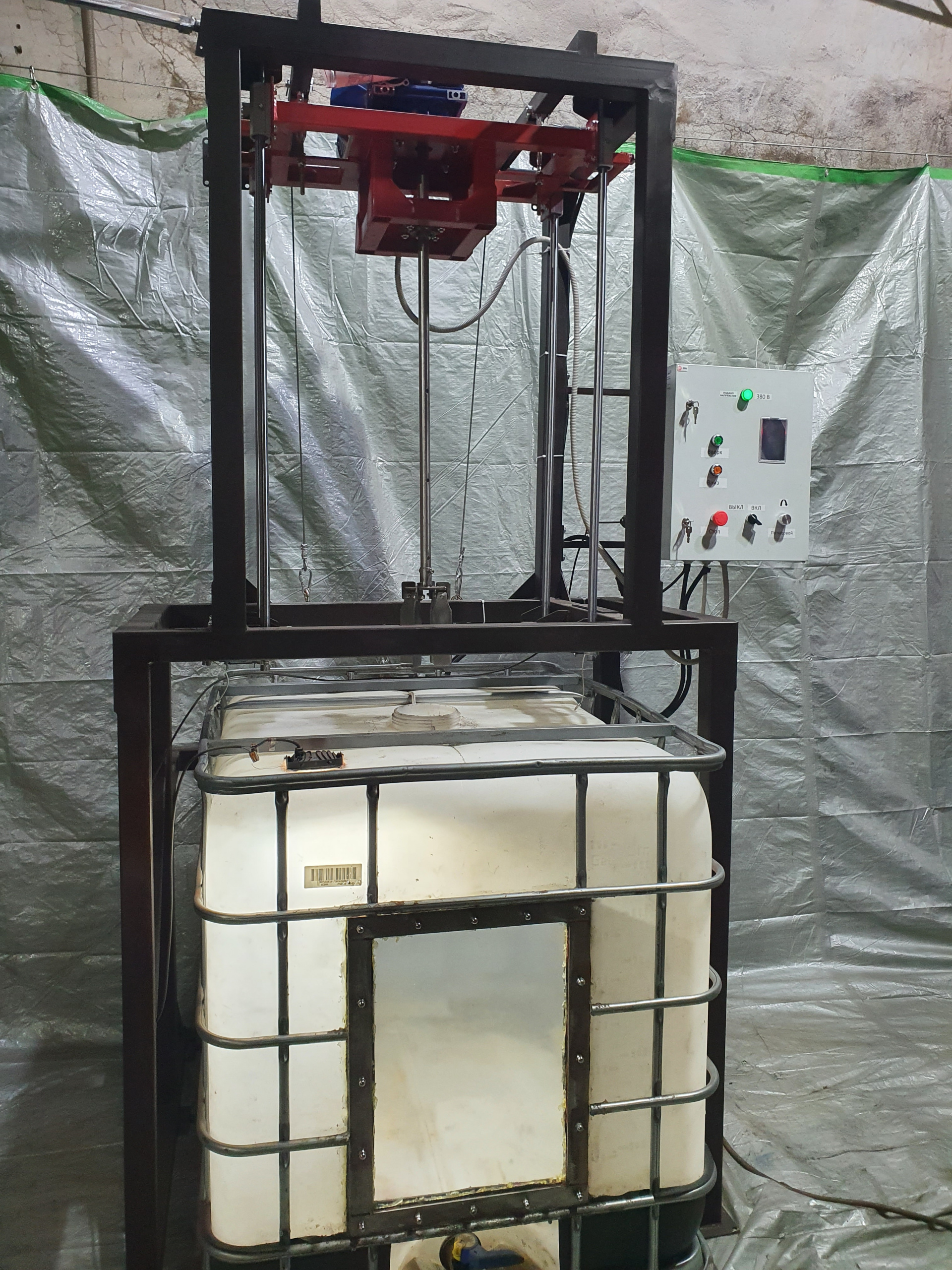 - Мешалки еврокуба укомплектованы удобным электрическим подъёмным механизмом для подъёма или опускания мешалки.