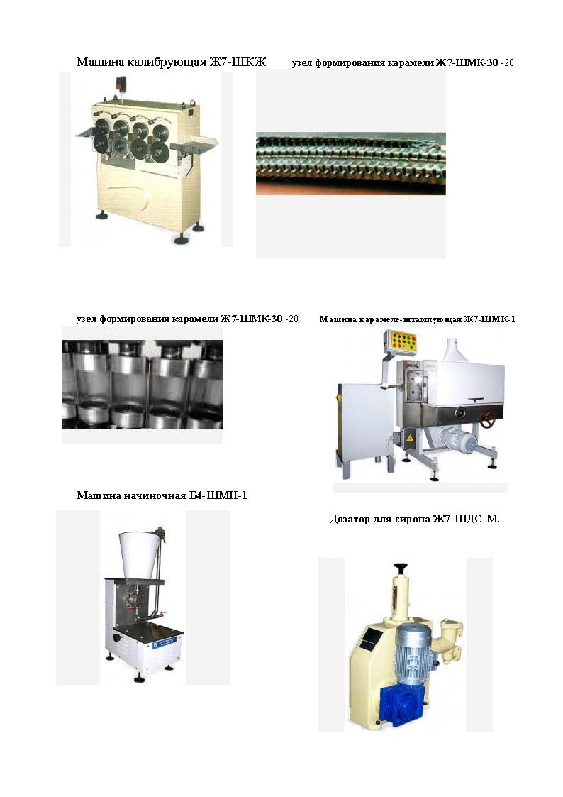 3. Машина карамеле-штампующая Ж7-ШМК-1. оборудование по производству карамели. Машина предназначена для формирования из сплошного леденцового карамельного жгута (или жгута с начинкой) разнообразной карамели в зависимости от конфигурации, рисунка и размеров штампиков формирующих цепей. Входит в комплект оборудования поточно-механизированных линий по производству карамели на предприятиях кондитерской промышленности. Производительность 540-1100 кг.час.