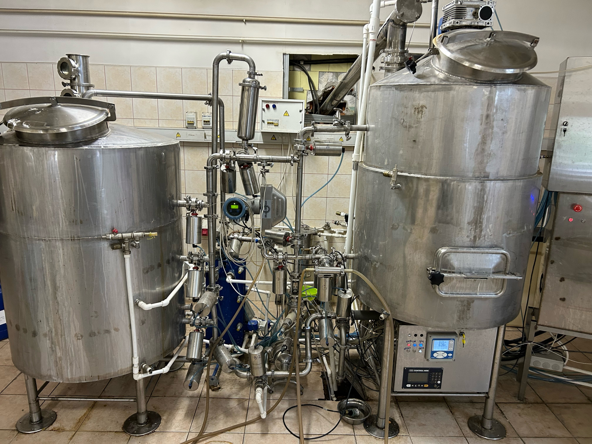- варочный порядок, 2-х посудный, фильтр чан и чан для кипячения сусла с вирпулом (с рубашками, электрический тэн по 18квт),