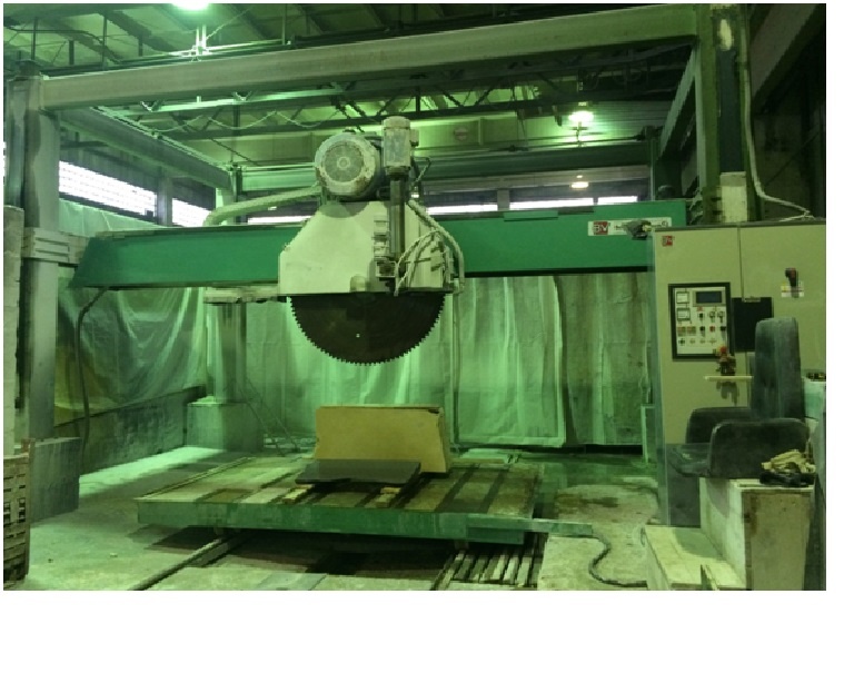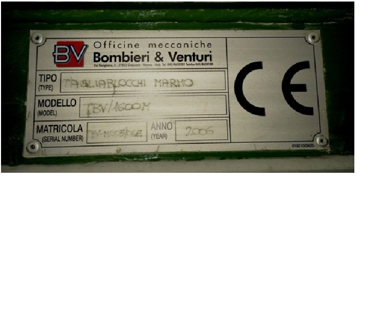 Итальянский камнерезный автоматический ортогональный распиловочный станок по мрамору фирмы "Bombieri& Venturi", модель TBV/1600 M, с электрической продольно-рельсовой тележкой для блоков. Максимальный диаметр вертикального диска 1600 мм. Диаметр подрезного горизонтального диска 500 мм.