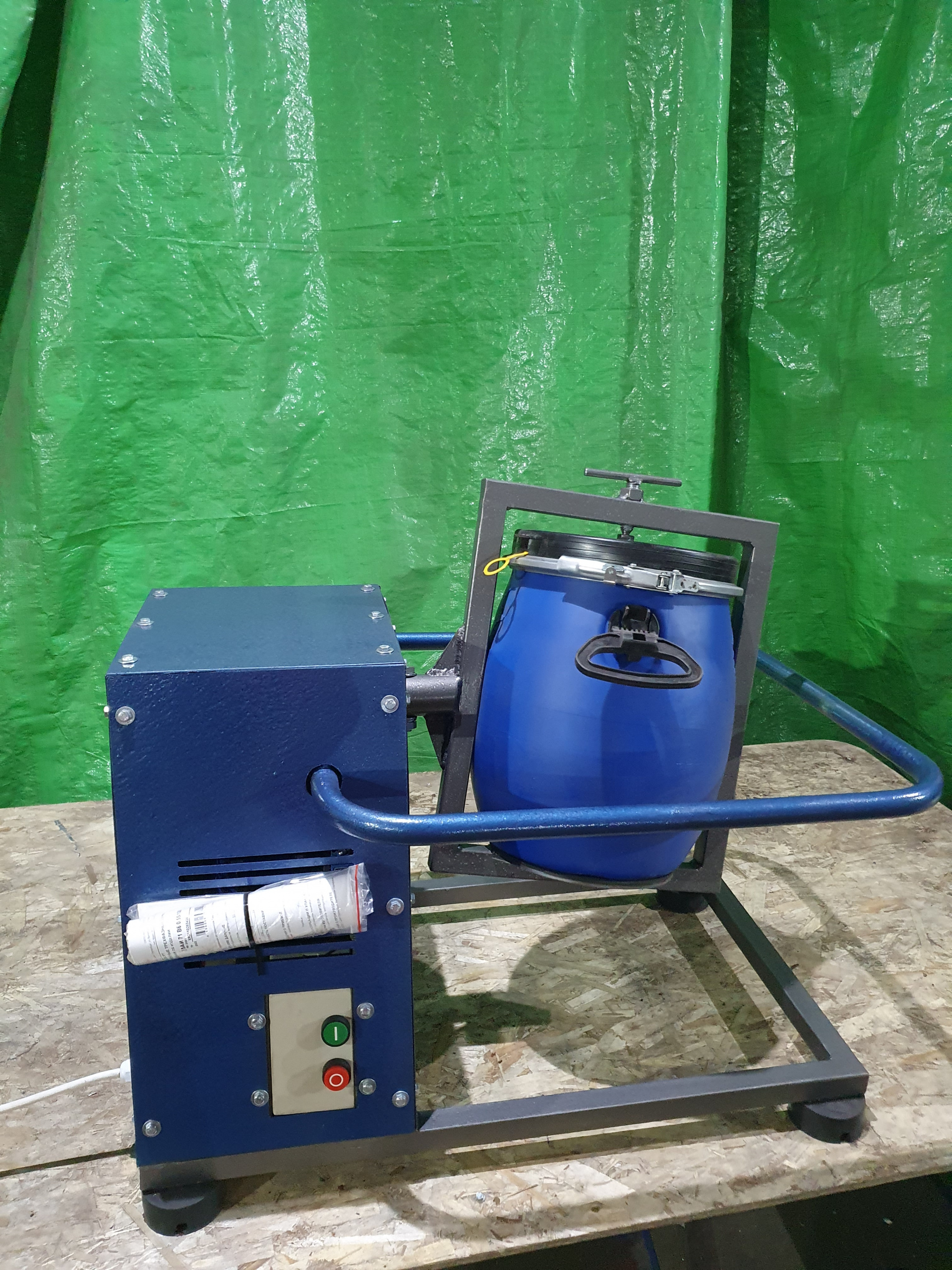 Производственный комплекс сложного перемешивающего оборудования компании @QuickMix представляет Вам Смеситель тип пьяная бочка объемом 20 литров.