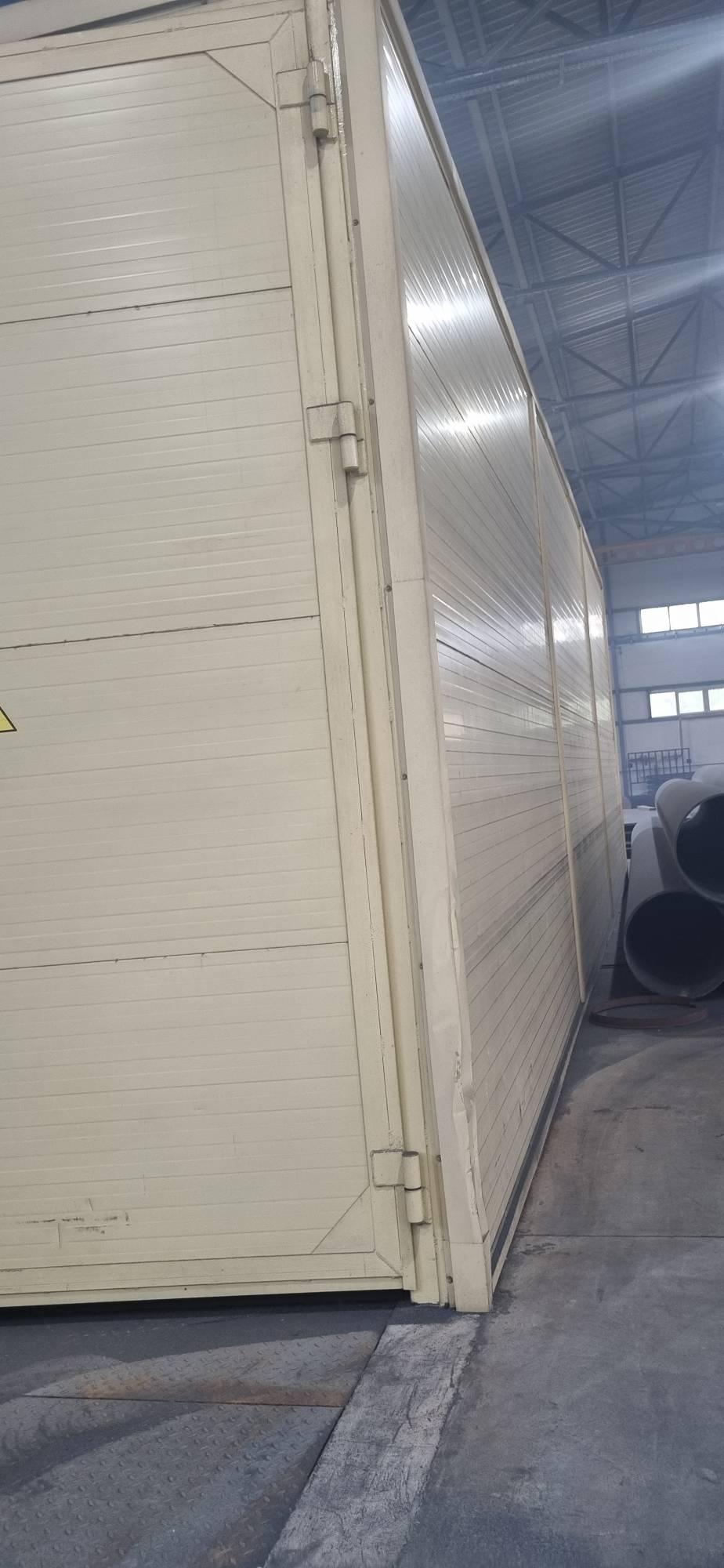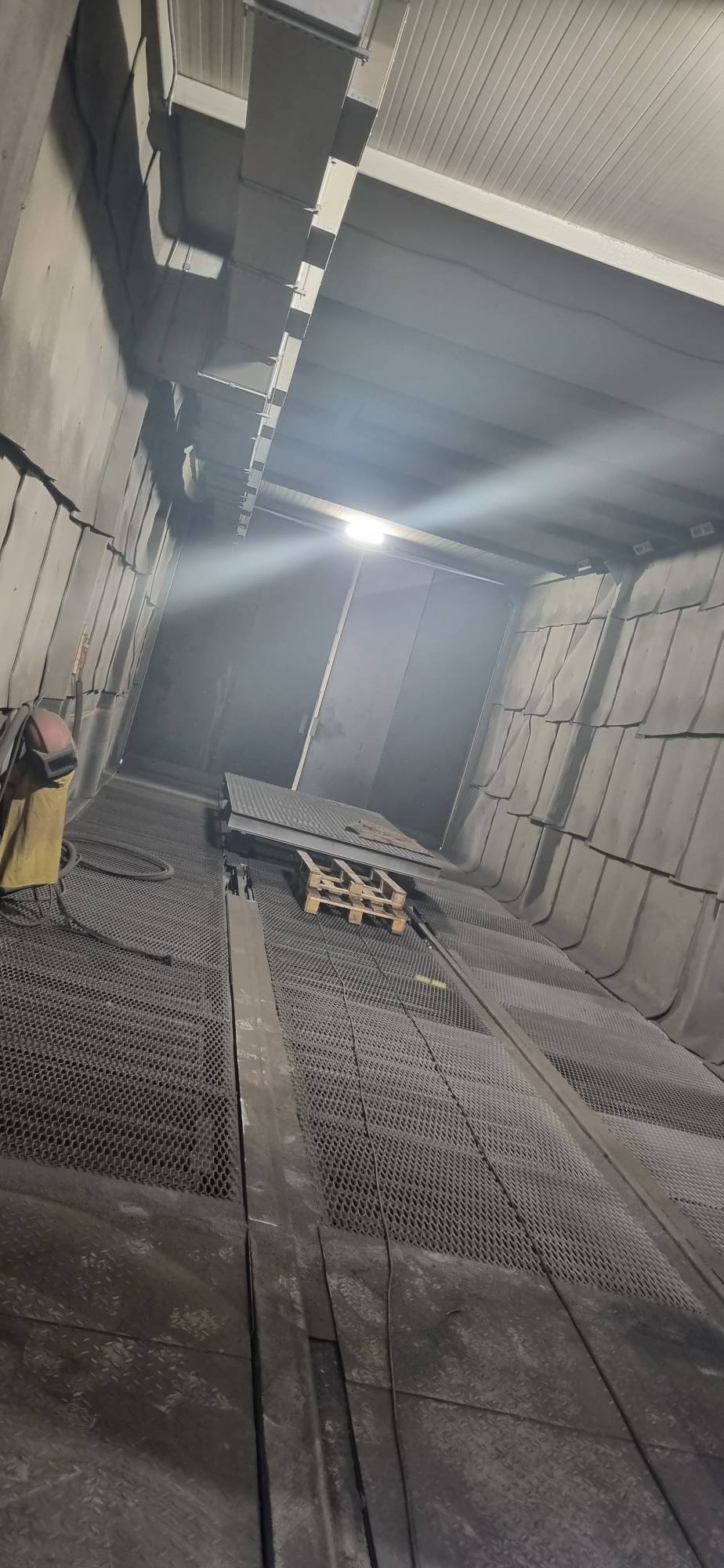 Предлагаем Вашему вниманию новую обитаемую (длина 12м х ширина 4м х высота 4,5м) дробеструйную камеру для очистки сварных металлоконструкций от окалины, ржавчины, окислов и других поверхностных загрязнений. Очистку производит оператор вручную, направляя струю дроби из дробеструйной установки на очищаемую поверхность.