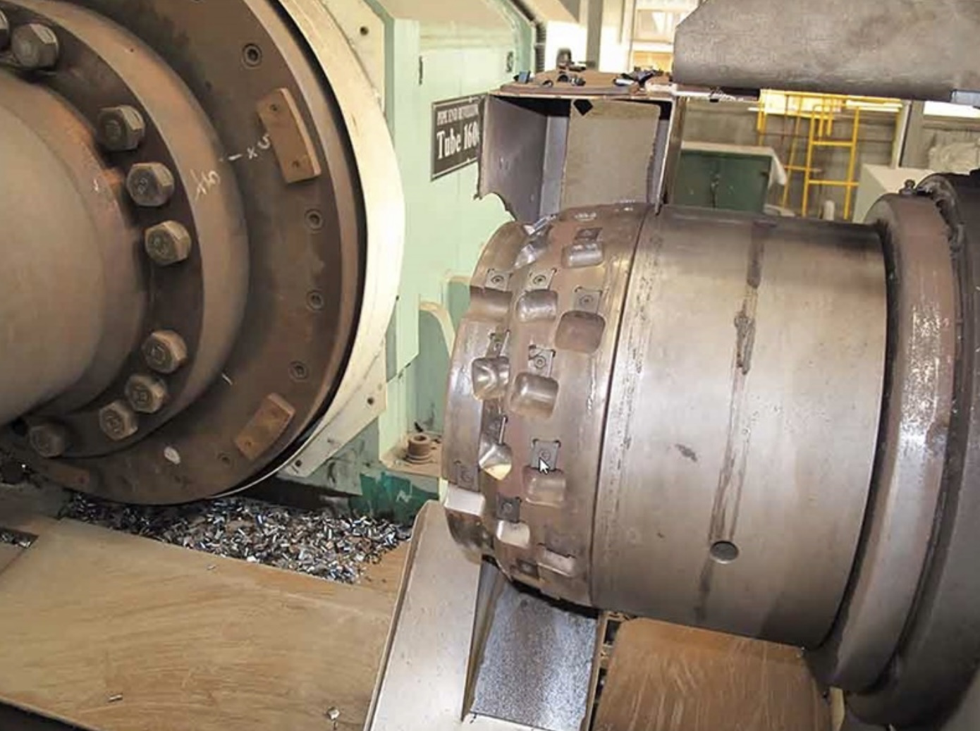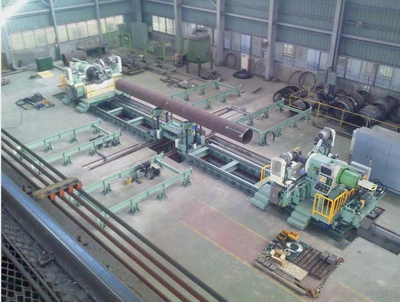 Труба захватывается и фиксируется с обеих сторон с помощью внутренних зажимов. Снятие фасок выполняется тяжелыми пластинчатыми фрезерными головками с несколькими режущими пластинами с обеих сторон. Четыре (4) фрезерные головки для толстолистовых пластин диаметром 250 мм выполняют операцию снятия фаски. Четыре двигателя Cutter имеют мощность 15 кВт (20 л.с.) каждый.