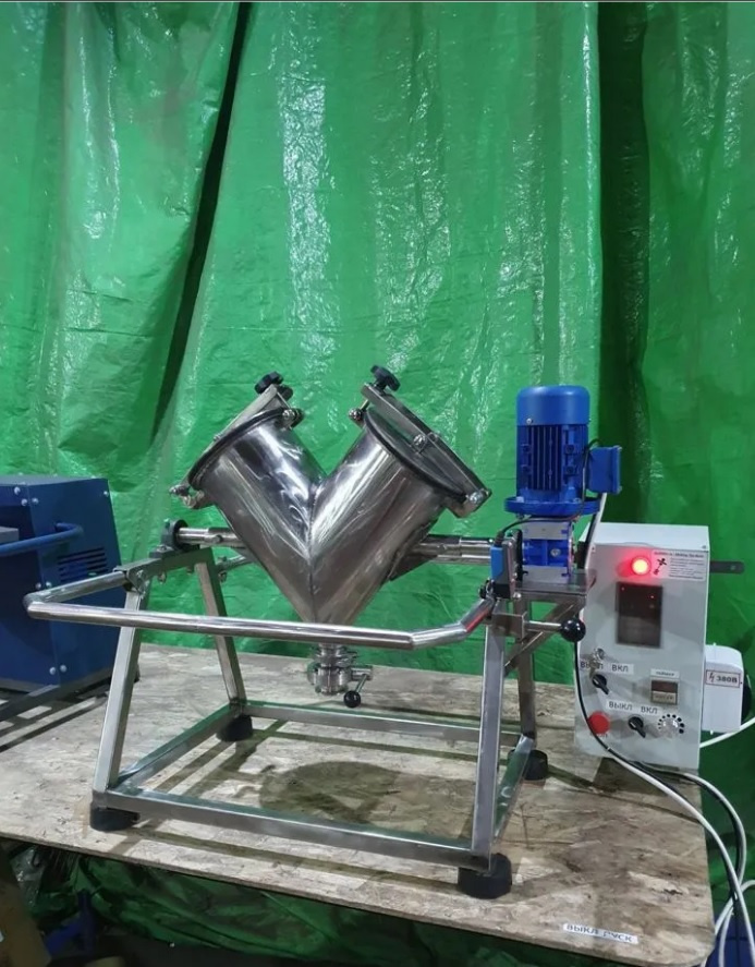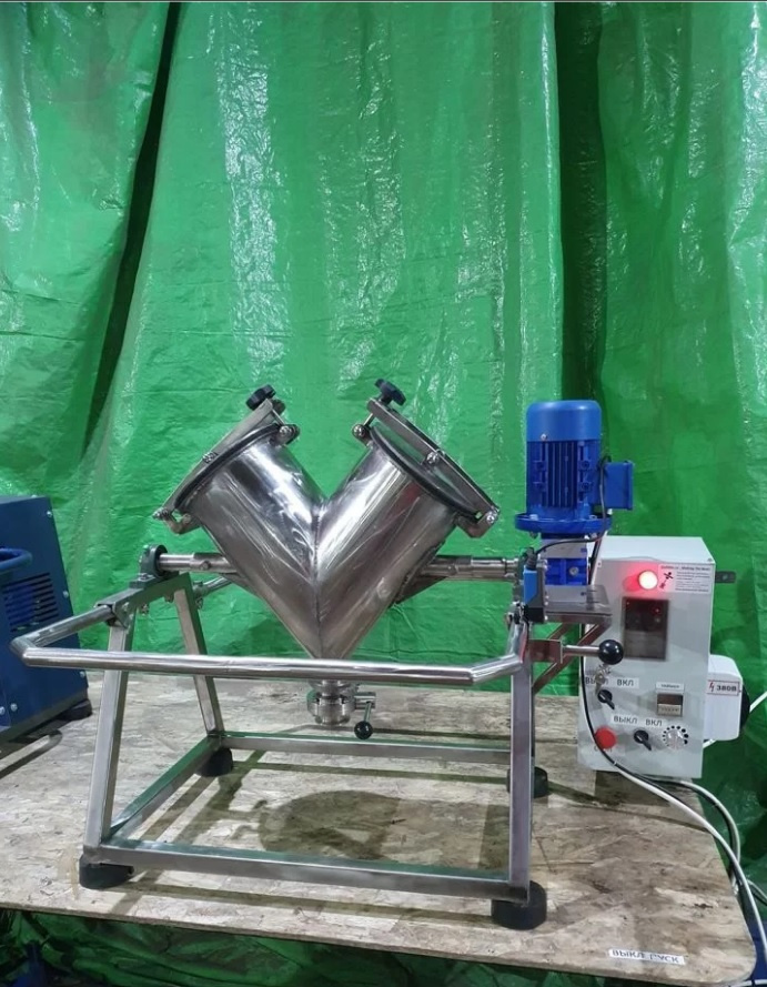 Смеситель V-образный из нержавеющей стали объёмом 20 литров. Изготовленный производственным комплексом @QuickMix!