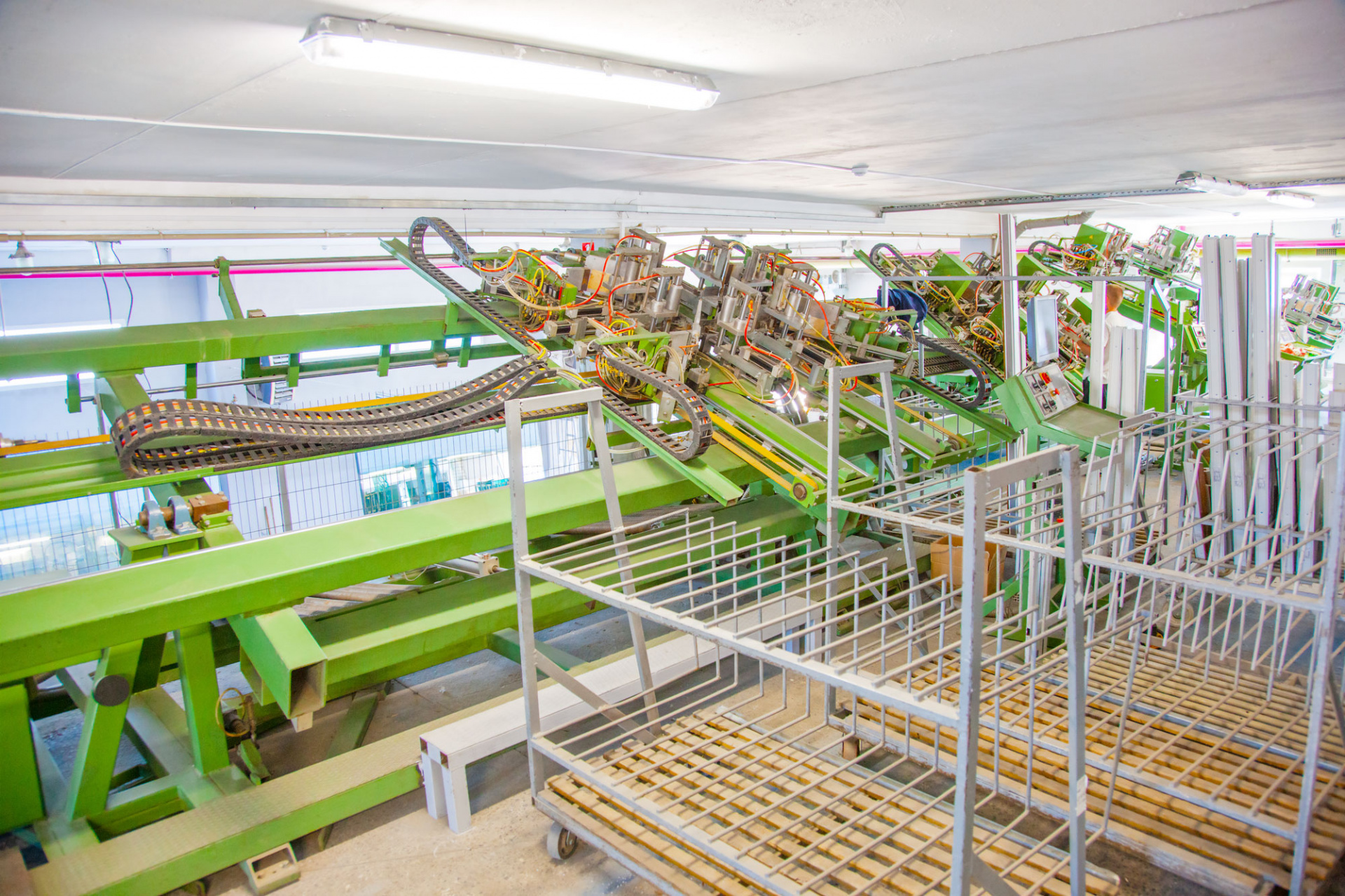 4-головая сварочная машина для одновременного сваривания профилей под углом 90°.