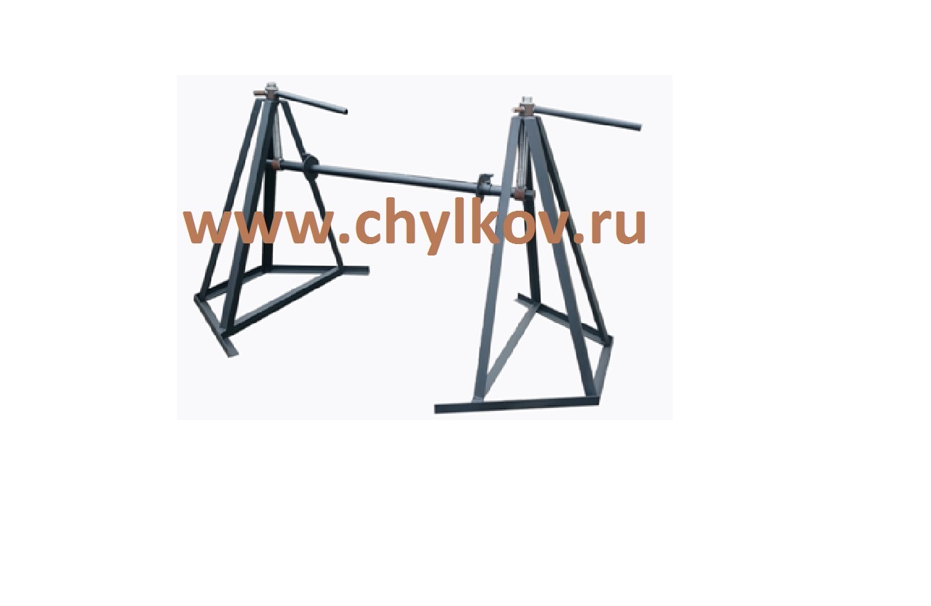 Кабельный домкрат ДВ 5 предназначен для подъёма и размотки кабельных барабанов диаметром 1800-2200 мм и массой до 5000 кг. Комплект состоит из двух стоек с домкратами и оси диаметром 48 мм. Подъём осуществляется с помощью винтовой пары. Может использоваться в качестве отдающей/подающей стойки при проведении отмоток кабеля, провода, троса и т.д.