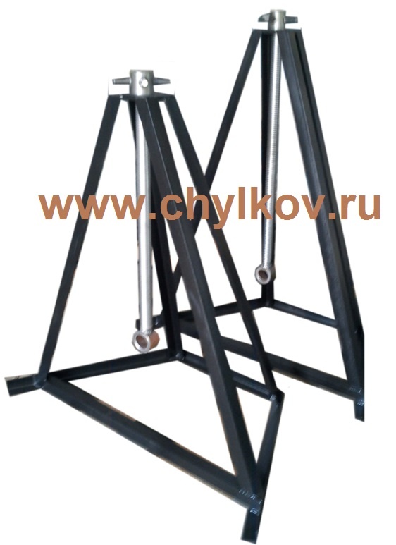 Комплект состоит из двух стоек с домкратами и кабельных осей диаметром 48 мм и 70мм с поджимными башмаками.