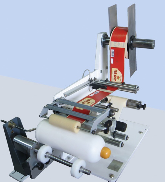 Полуавтоматические этикетировочные машины предназначены для нанесения самоклеящихся этикеток с рулона, работающие в режимах только отделения этикетки от основы, так называемые, диспенсеры, либо служащие для последующего нанесения этикеток на цилиндрические поверхности разного диаметра с круговой обкаткой (бутылки, банки, пузырьки и т.д.). Использование - при розливе напитков, в фармацевтичесой промышленности, в парфюмерной промышленности, фасовке в банку, розливе бытовой химии, розливе технических жидкостей - тосола, масел, химических продуктов, медицинских препаратов и т.д.
