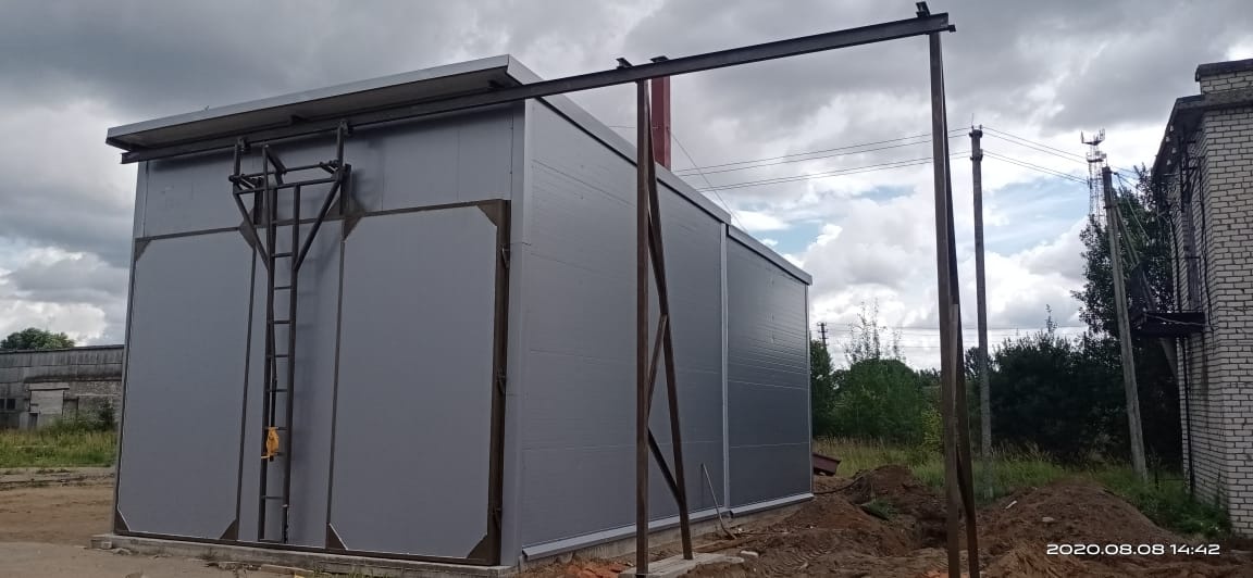 Сэндвич-панели с минераловатным утеплителем плотностью110кг/м3 используются в качестве стеновых, кровельных элементов, которые имеют обкладки. Наружные обкладки покрыты полиэфирной эмалью. Для наружных стен I степени огнестойкости зданий используются огнестойкие панели ЕI60. Для расширения возможностей комплекса модульная конструкция позволяет стыковать дополнительные модули. данная возможность существенно снижает стоимость модернизированного комплекса.