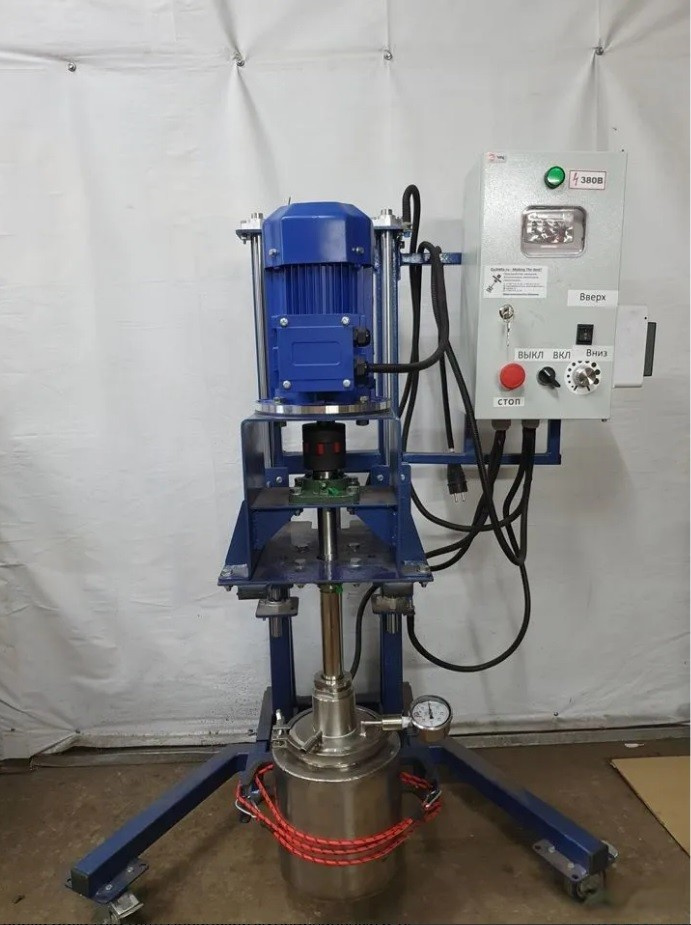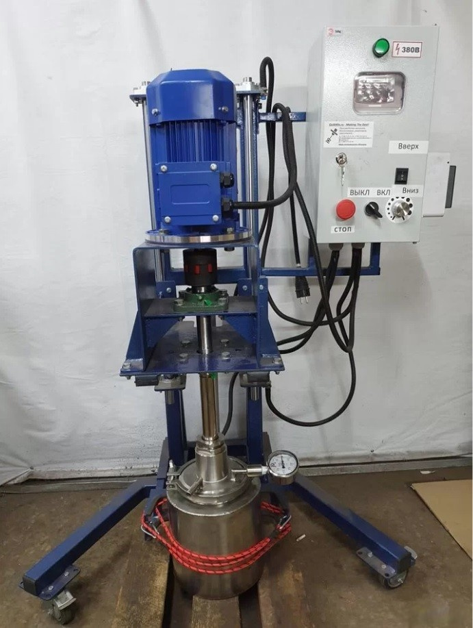 Диссольвер лабораторный с вакуумной ёмкостью объёмом 10 литров. Изготовленный производственным комплексом @QuickMix!