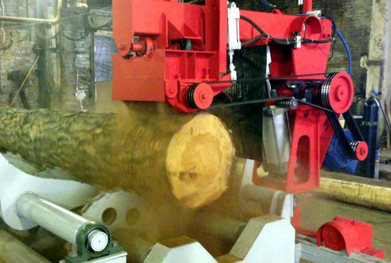 Станок обрабатывает бревна различных пород, в том числе и твердых.