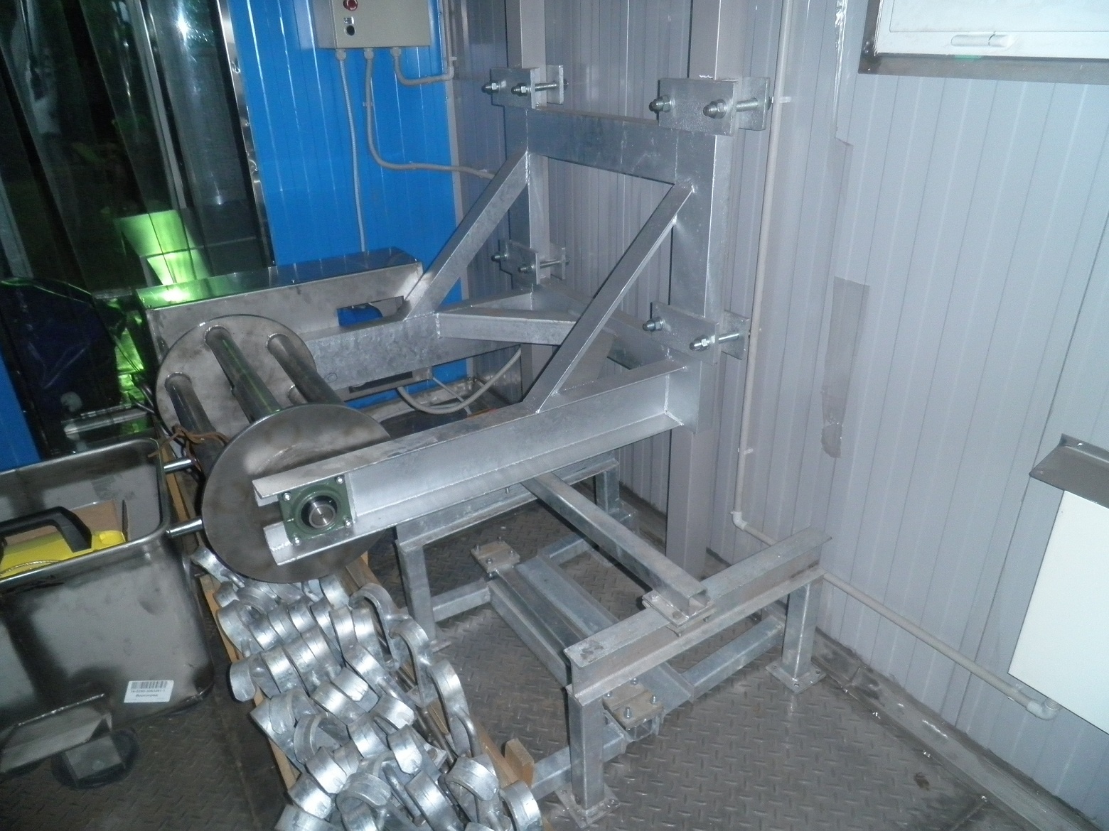 - подвешивание туши на подвесной путь с помощью тельфера;