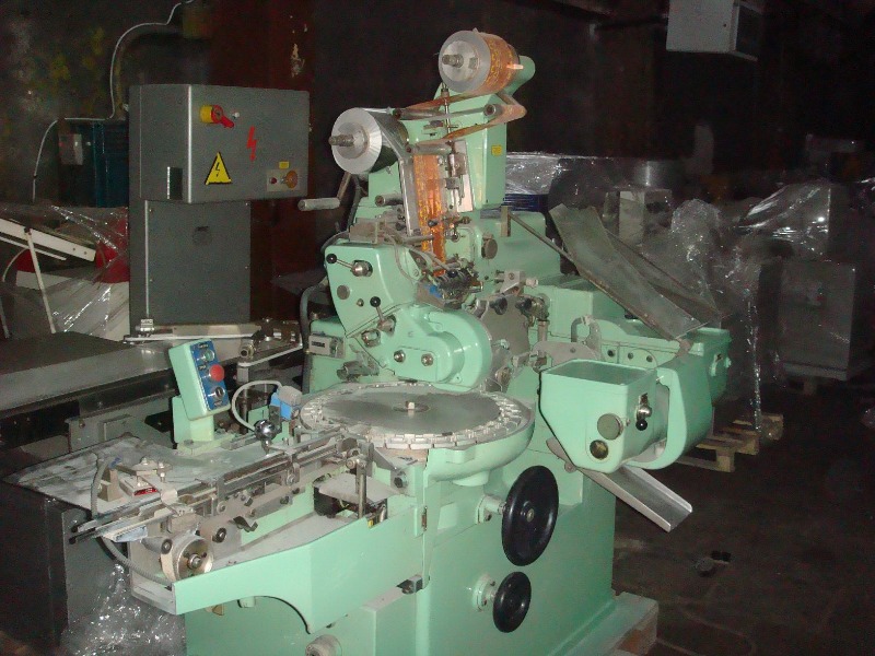 Продам Заверточный автомат итальянской фирмы «CARLE&MONTANARI» модель CM.H56bn и питателя к этому заверточному автомату швейцарской фирмы «Sapal» модель ASA, тип завёртки «саше». Ревизионные мероприятия 2013 год, в результате которых выяснилось, что автомат находится в идеальном состоянии, не требует ни каких замен втулок роликов и прочих, естественно изнашивающихся узлов в процессе эксплуатации. Вместе с тем, на автомате установлена, предприятием изготовителем, интеллектуальная система регулировки скорости заворачивания конфет, если конфета с одинаковой геометрией, то происходит увеличение скорости и соответственно наоборот снижение, с целью сохранения эстетического вида завернутой конфеты. Скорость заворачивания 180- 220 конфет в минуту. Полный перечень оборудования с описанием и фото на сайте. Цена договорная (О).