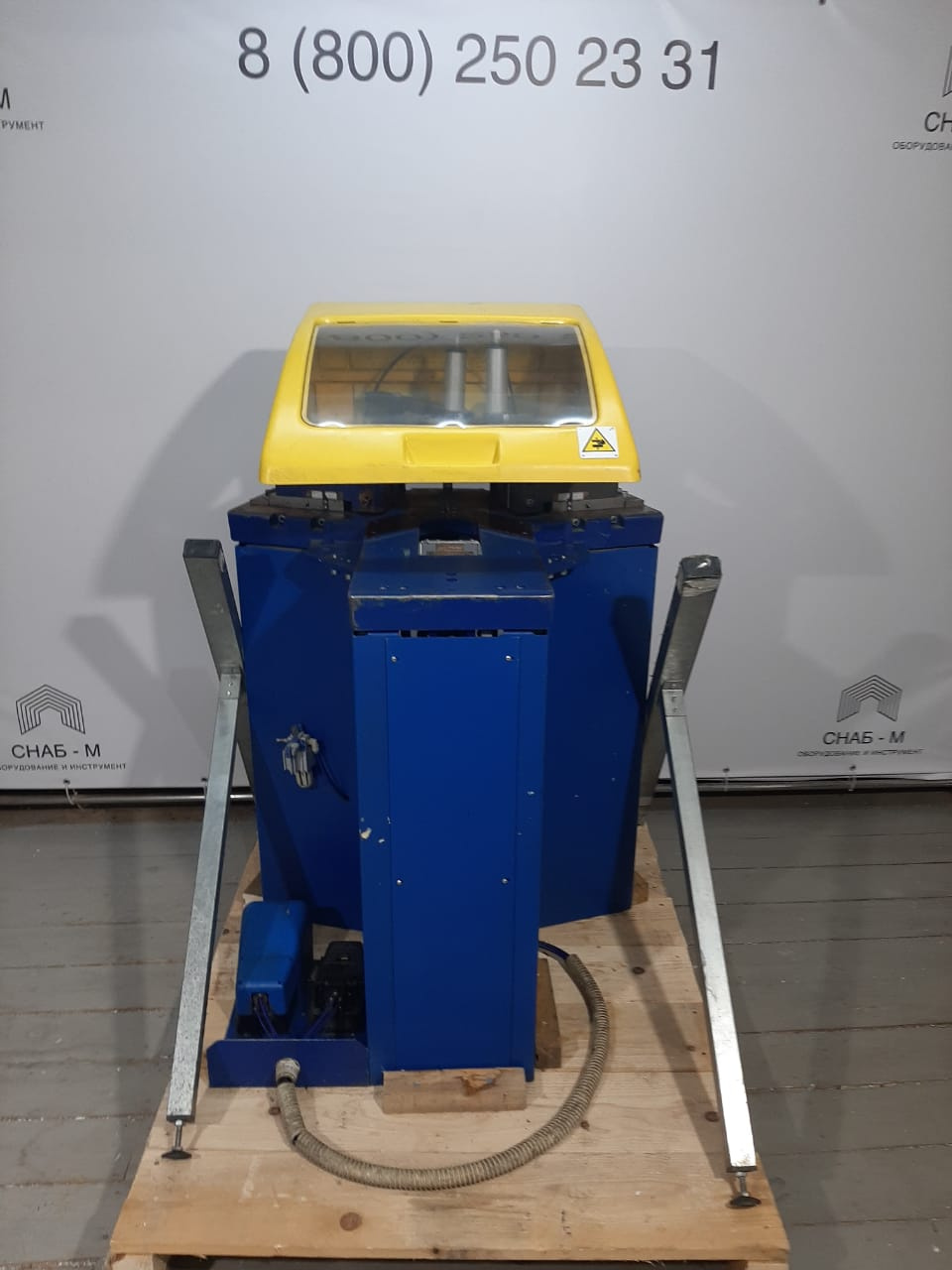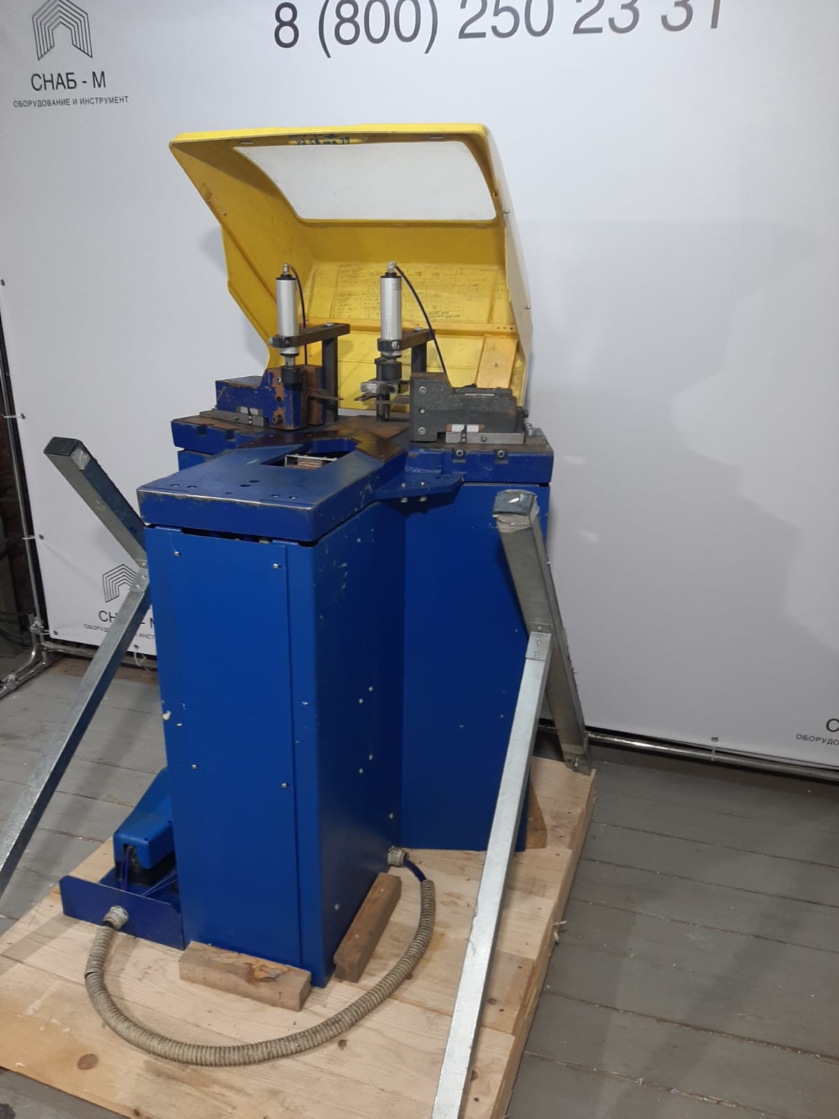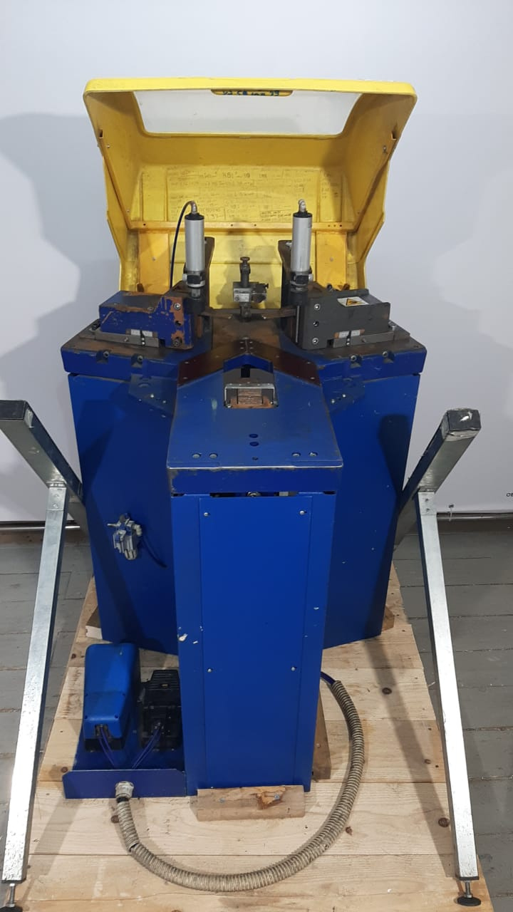 Универсальный гидропневматический углообжимной пресс Atla Coop GAMMA - хорошее состояние, предназначен для соединения угловых соединений в алюминиевых конструкциях путём обжима угла с установленном внутри сухарем. Угол с сухарем обжимается ножами, которые установлены симметрично и движутся синхронно.