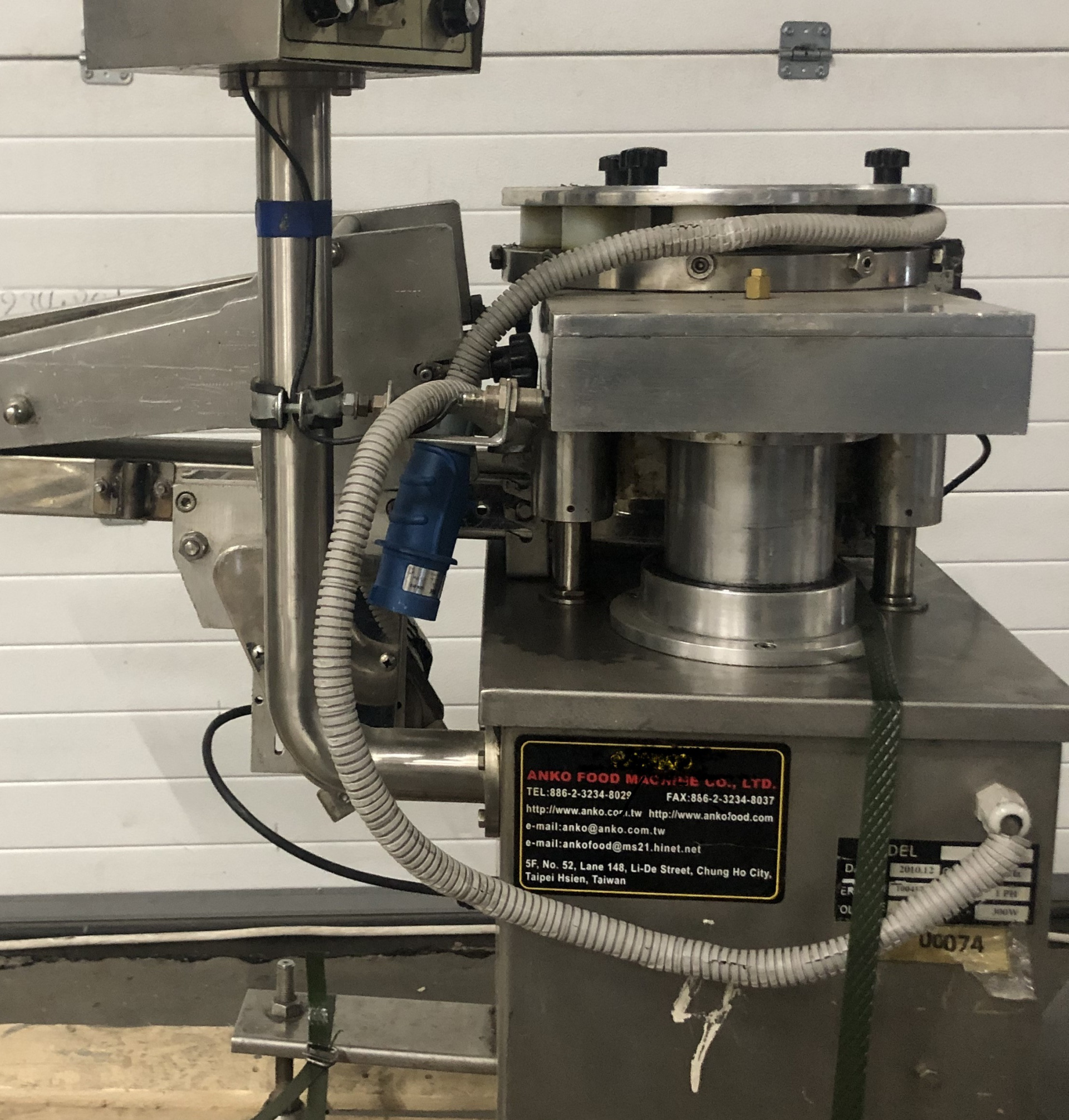 Приставка АОКО служит для производства хинкали с мясной или рыбной начинкой. Из пельменного автомата выходит тестовой «чулок», наполненный фаршем, который попадает в узел формовки приставки АОКО , в котором закручиваются хинкали. Готовые изделия падают на отводящий транспортер, с которого отправляются оператором на упаковку. Производство КНР. Машина дополнена устройством (прихлоп). Есть видео работы.