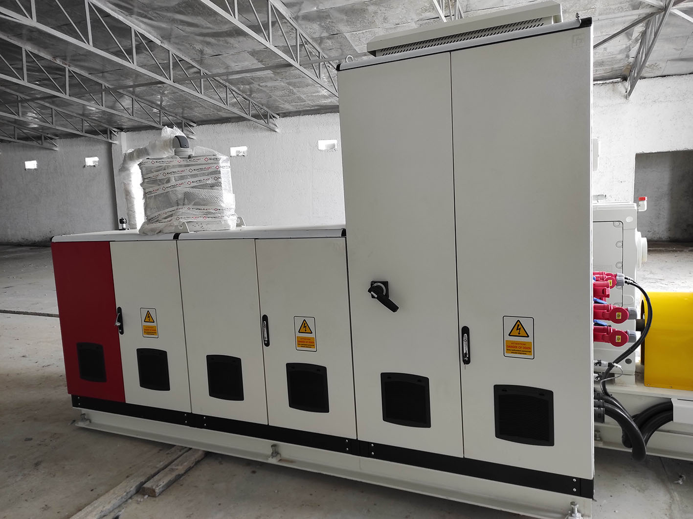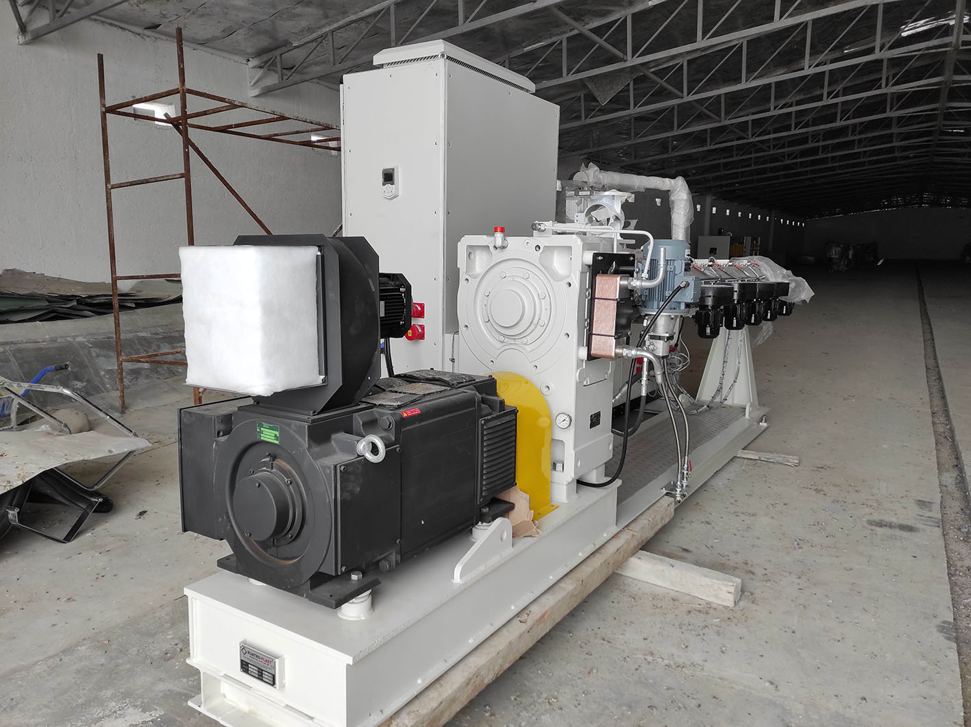 В комплекте : бункер сырьевой, загрузочный бункер, ванна охлаждения, тянущее устройство, отрезной устройство, шкаф управления (асу) , пневмокрмпрессор, градильня (чиллер), стеллаж.