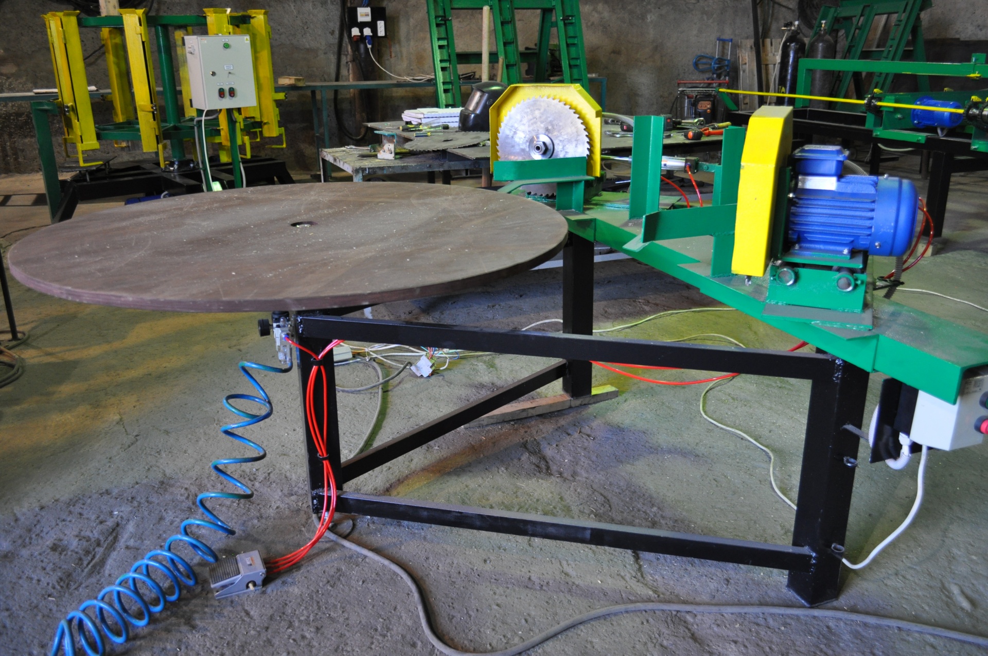 В комплекте торцовочные станки для производства паллетной заготовки - досочки и "шашки" - ТД-4.4 и ТШ-8, а также приспособления (кондуктора - К) для сборки поддона и углообрезной станок - УГ-2П. Ещё при необходимости можем доукомплектовать линию станочком по выбору фасок - Ф.