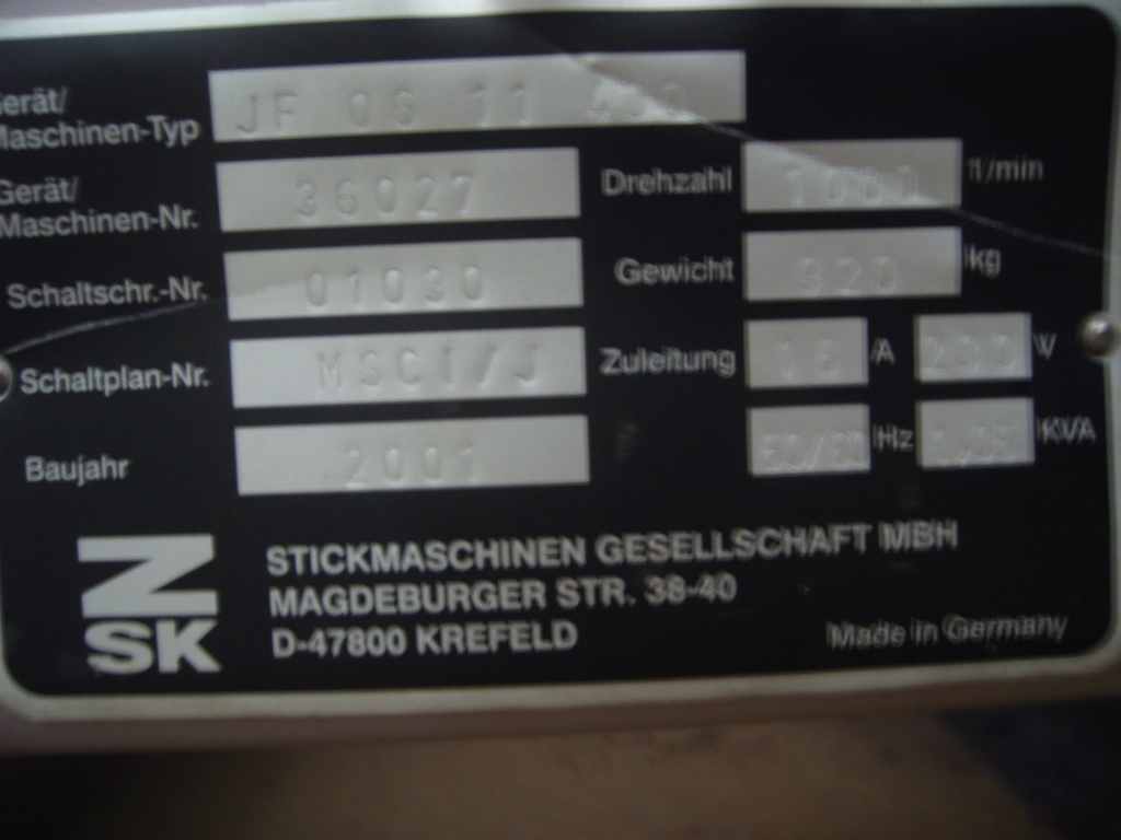 Вышивальная машина ZSK JF 0611-400 Б/У - Продам в Praha