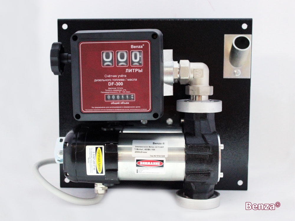 Мини АЗС марки Benza предназначена для перекачки дизтоплива. Устанавливается вертикальной поверхности и работает от источника питания 12 В. Это позволяет осуществлять заправку транспортных средств топливом, в любом удаленном от города месте. Производительность насоса, в зависимости от модели, варьируется от 40 до 80 литров в минуту, мощность от 270 до 350 Вт.