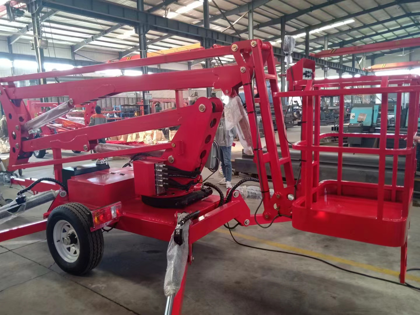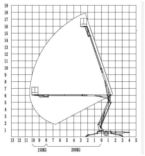 Коленчатый подъемник прицепной ZHTC0.2-16 может быть поднят и выдвинут горизонтально и вверх.