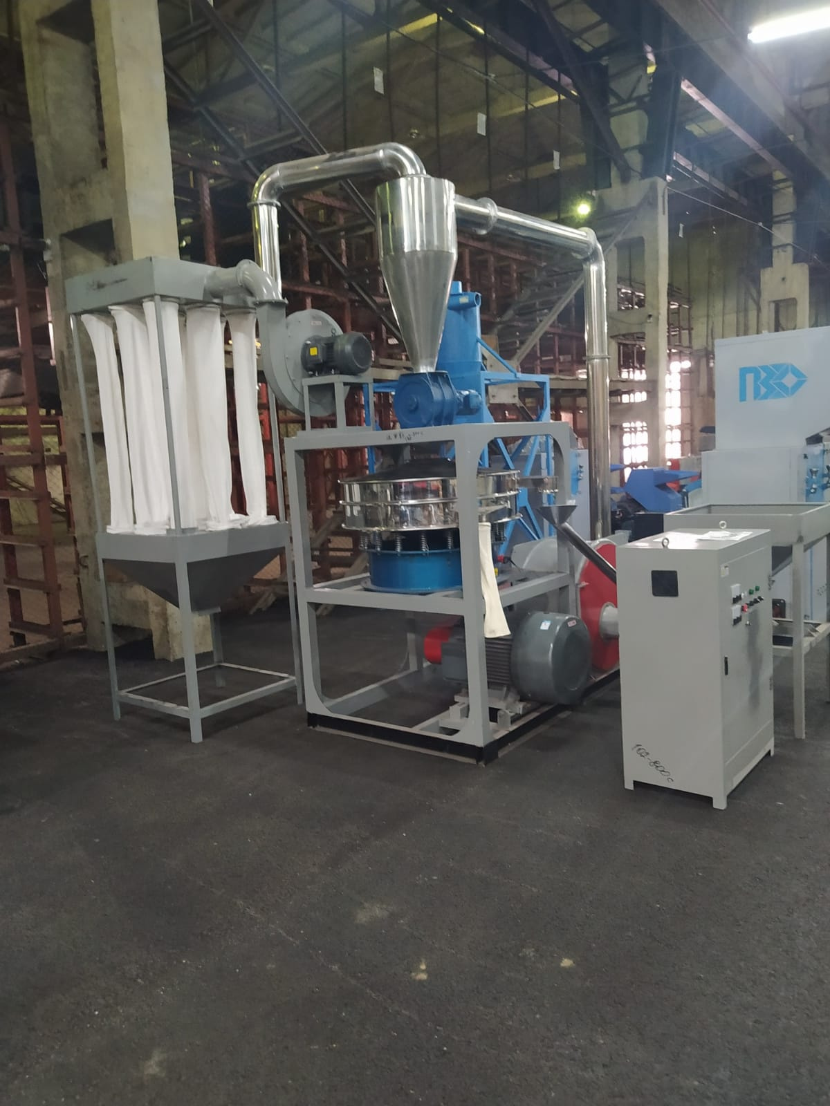 | Ножевые мельницы измельчают по средствам ротора, вращающегося с большой скоростью. Мельница оснащена загрузочным бункером с виброподачей, вибросортировкой. Промышленные мельницы способны так же эффективно измельчать другие материалы кроме полимеров. Устройство роторно-ножевой мельницы позволяет переработать и твердое органическое сырье. Если Вы хотите опробовать эффективность ножевых мельниц на Вашем сырье, это возможно сделать во время тестового запуска, на нашем складе. Фракция переработанного материала после роторно-ножевой мельницы достигает до 1000 микрон. Основной двигатель 75 кВт, вибросито 1200, вентилятор 7,5 кВт, подвижных ножей 40, неподвижных ножей 21 |