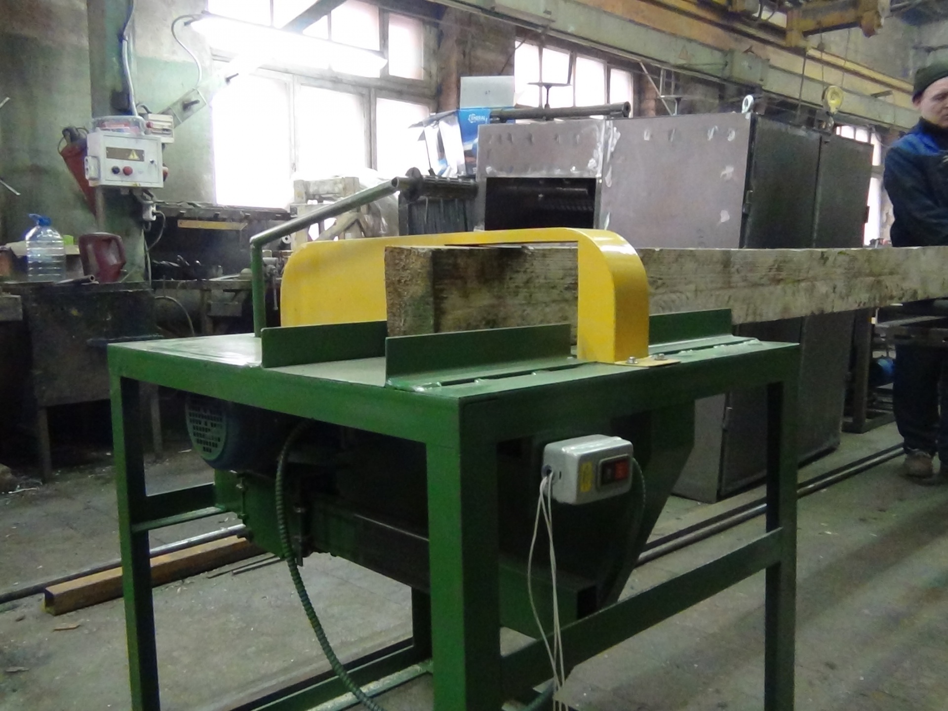 Требует одного работника для распиловки древесины.