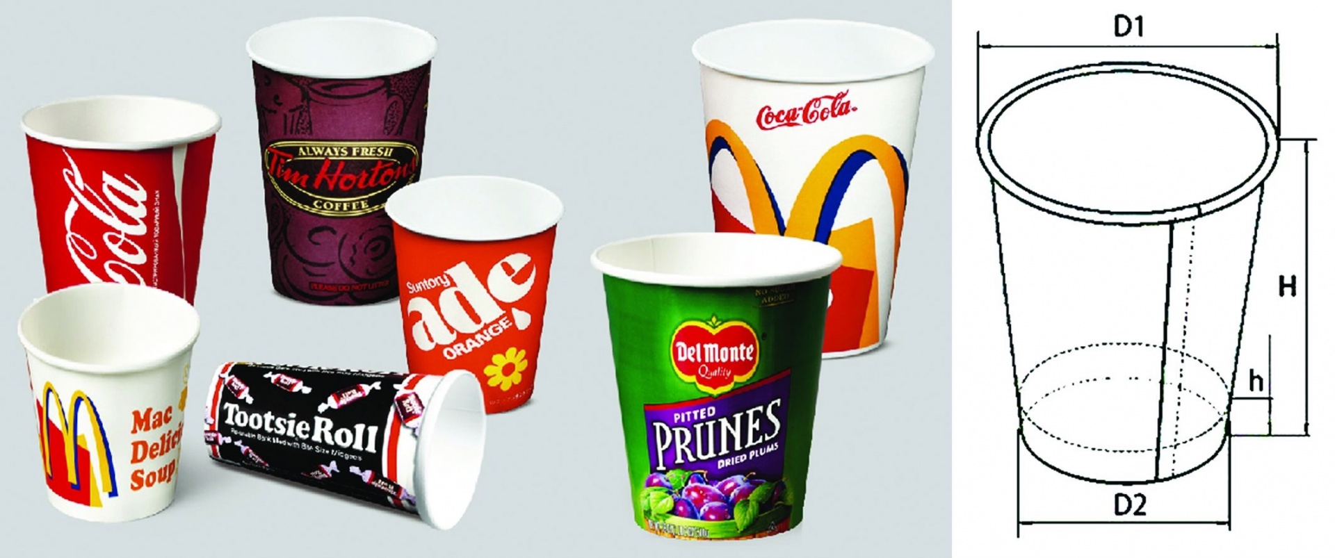 Размеры готовых бумажных стаканов: