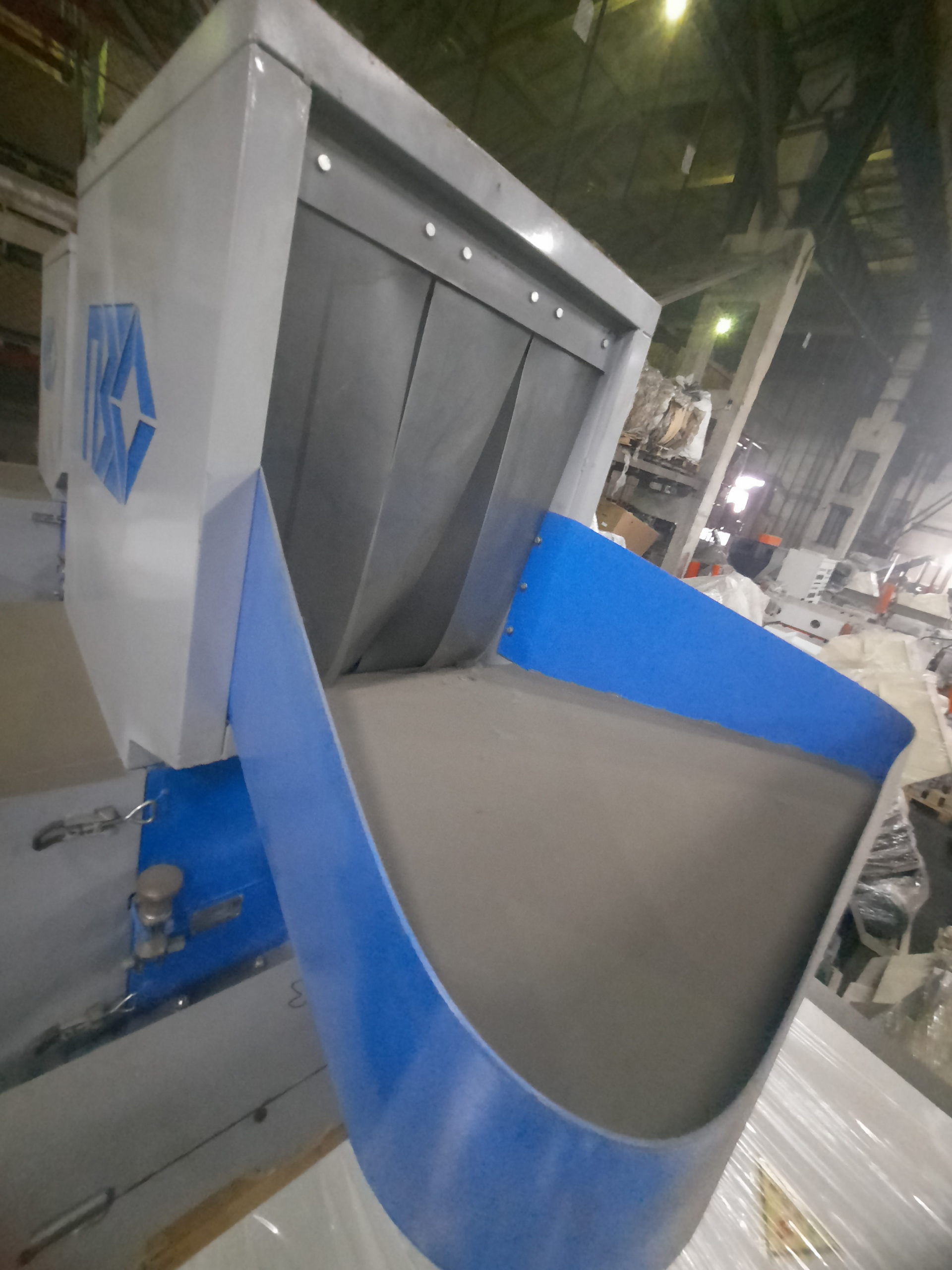 | Ласточкин хвост, с пневмовыгрузом, движок 22 кВт, 2+2+2 роторных ножей, 2+2 стационарных ножей. Дробилка DMU, где D - дробилка, M - конфигурация ножей по типу “косой рез”, L - V образная конфигурация ножей по типу "ласточкин хвост", U - выгрузка пневмотранспортом. Подходит для сухих, тонкостенных материалов и дальнейшей транспортировки в следующий узел переработки. В наших дробилках реализована система шумопоглощения, по сравнению с другими более 50%. Во всех дробилках предусмотрено подключение воды. Все дробилки разработаны и изготовлены по собственным чертежам и производятся серийно. |
